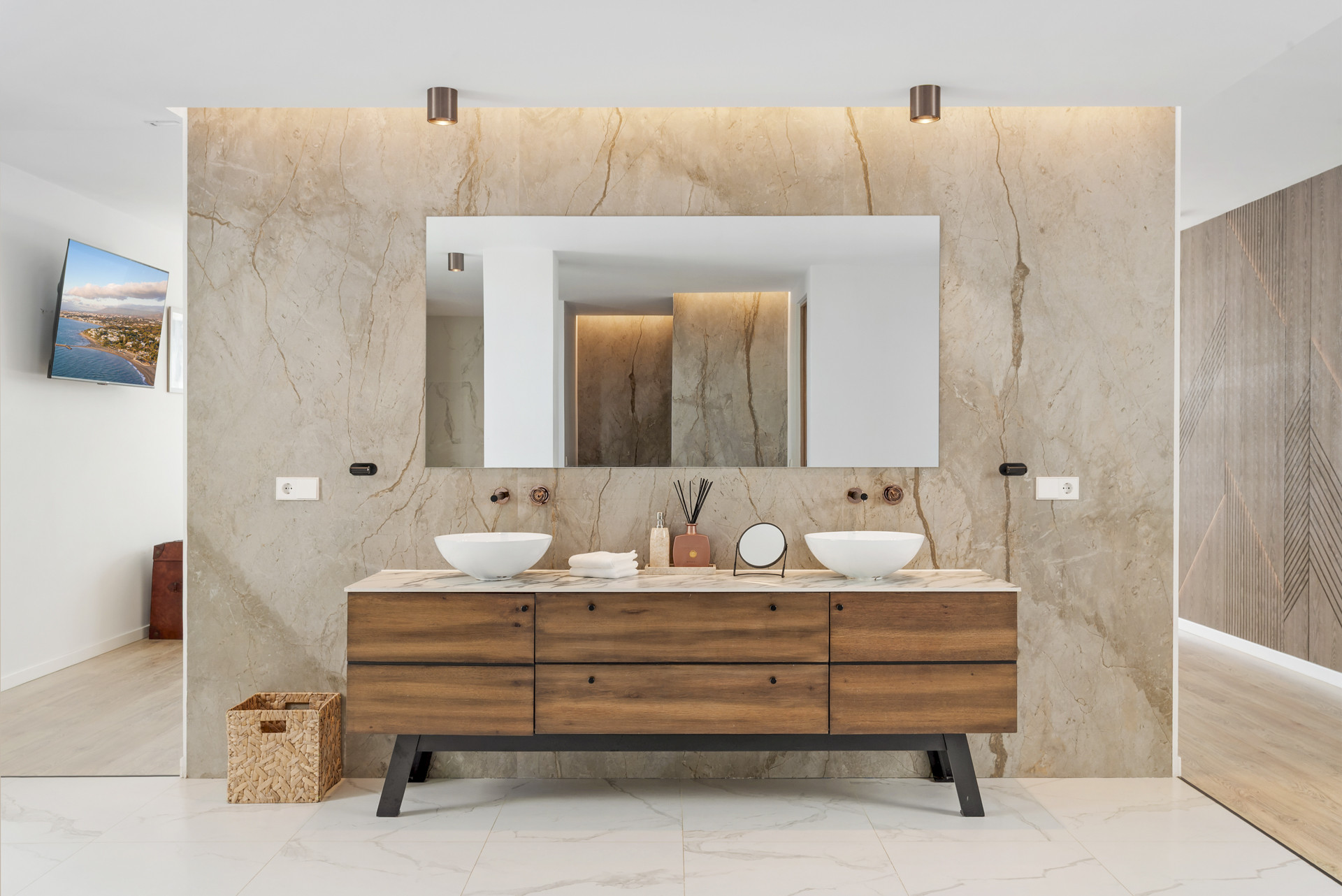 Tilbyder indhegnet grund, terrasse, vaskemaskine, tørretumbler, grill, kamin, strygejern, pengeskab, internet (wifi), hårtørrer, altan, fitnesscenter, alarm, spa, centralvarme, aircondition, swimming pool privat, garage til den samme bygning, 2 Fjernsyn.