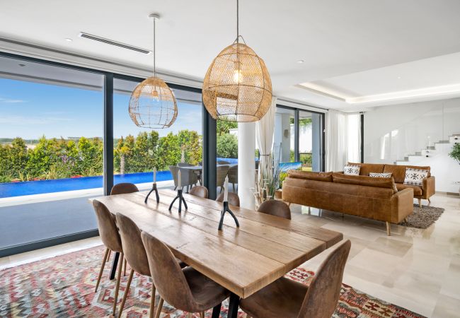 Oplev den ultimative skandinaviske elegance i Villa Pinot, en betagende 4-værelses tilbagetrækning, der ligger i det prestigefyldte La Resina-område, perfekt placeret mellem Marbella og Estepona.