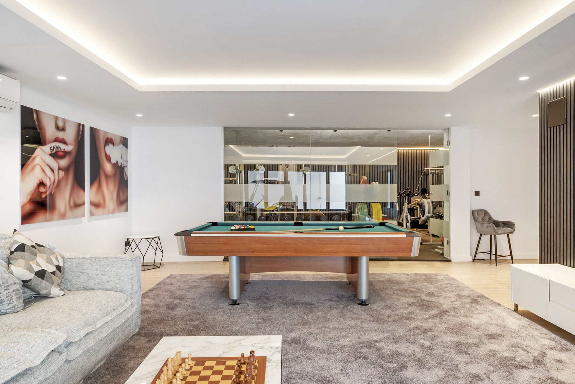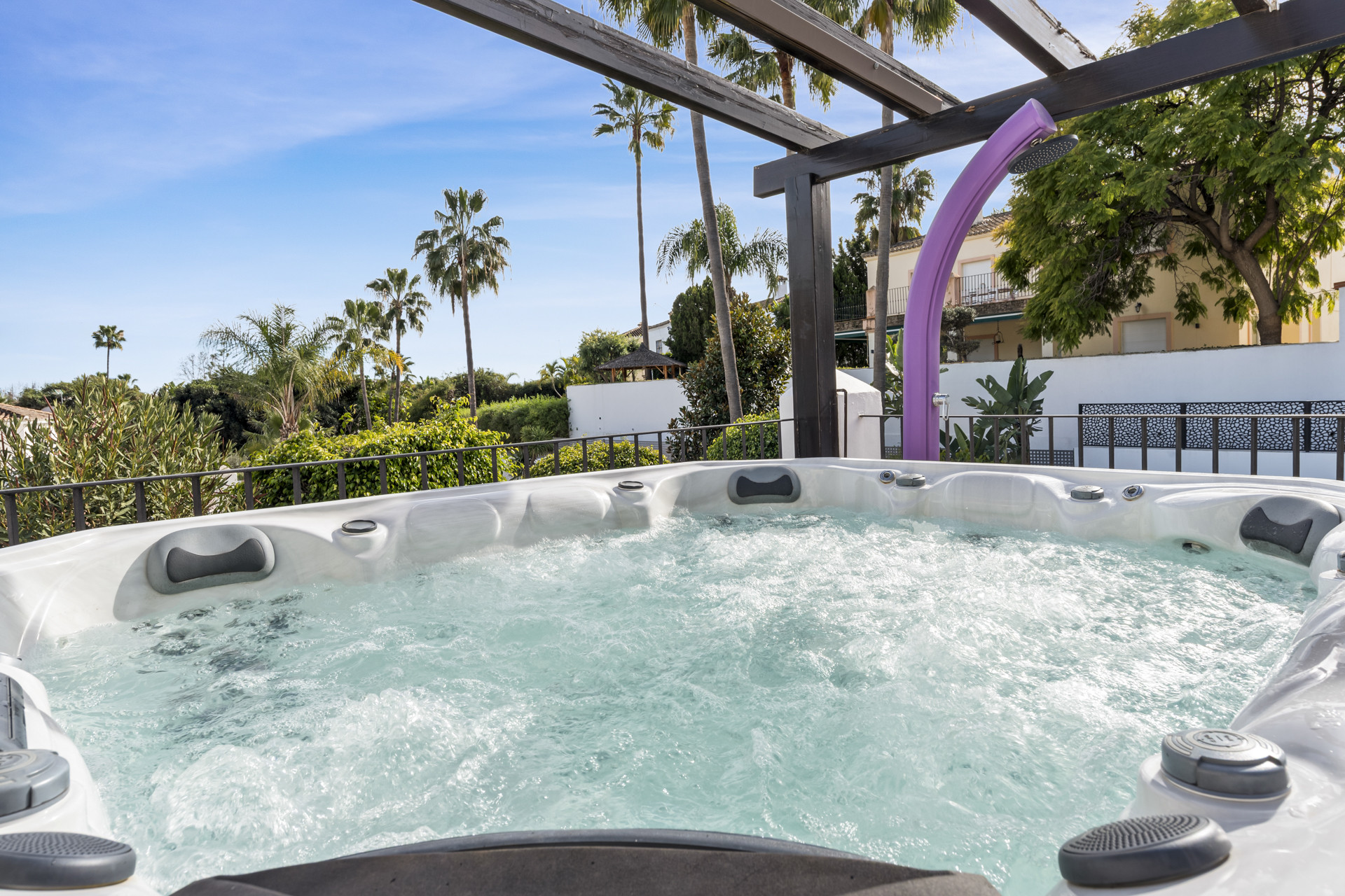 For gæster, der nyder at holde sig aktive, har villaen også et privat fitnesscenter. På øverste etage tilbyder en jacuzzi på balkonen et vidunderligt sted at slappe af, mens man nyder frisk luft og fredelige omgivelser - perfekt til aftenens afslapning efter en dag i solen.