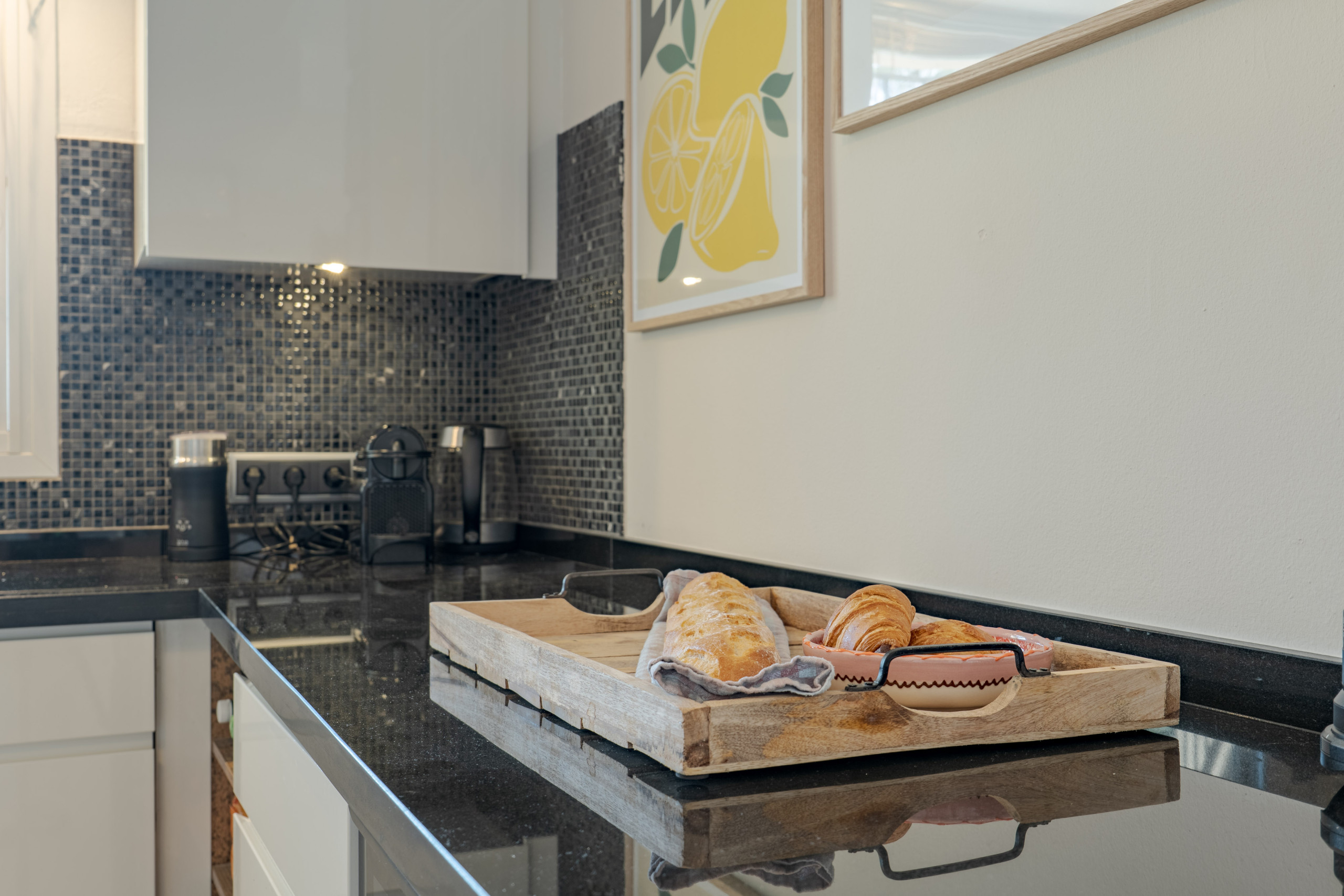 The villa features four bedrooms—one located on the ground floor and three on the upper level. Both the downstairs bedroom and the master suite upstairs are en-suite and offer direct access to the terraces. The other two upstairs bedrooms share a bathroom. All bedrooms feature a King size bed for your comfort and relaxation, This layout comfortably accommodates up to 8 guests.
