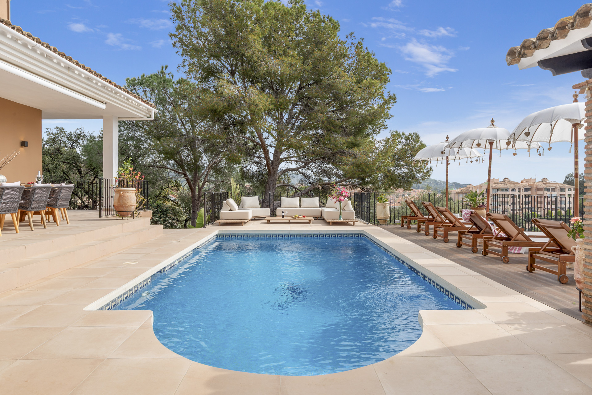 Designet til afslappet middelhavsliv byder ejendommen på panoramiske havudsigter, som kan nydes fra de indendørs opholdsarealer og de rummelige udendørsarealer. Villaen tilbyder flere udendørs loungeområder, som er perfekte til afslapning hele dagen, samt liggestole ved den private swimmingpool til at nyde Marbellas solskin.