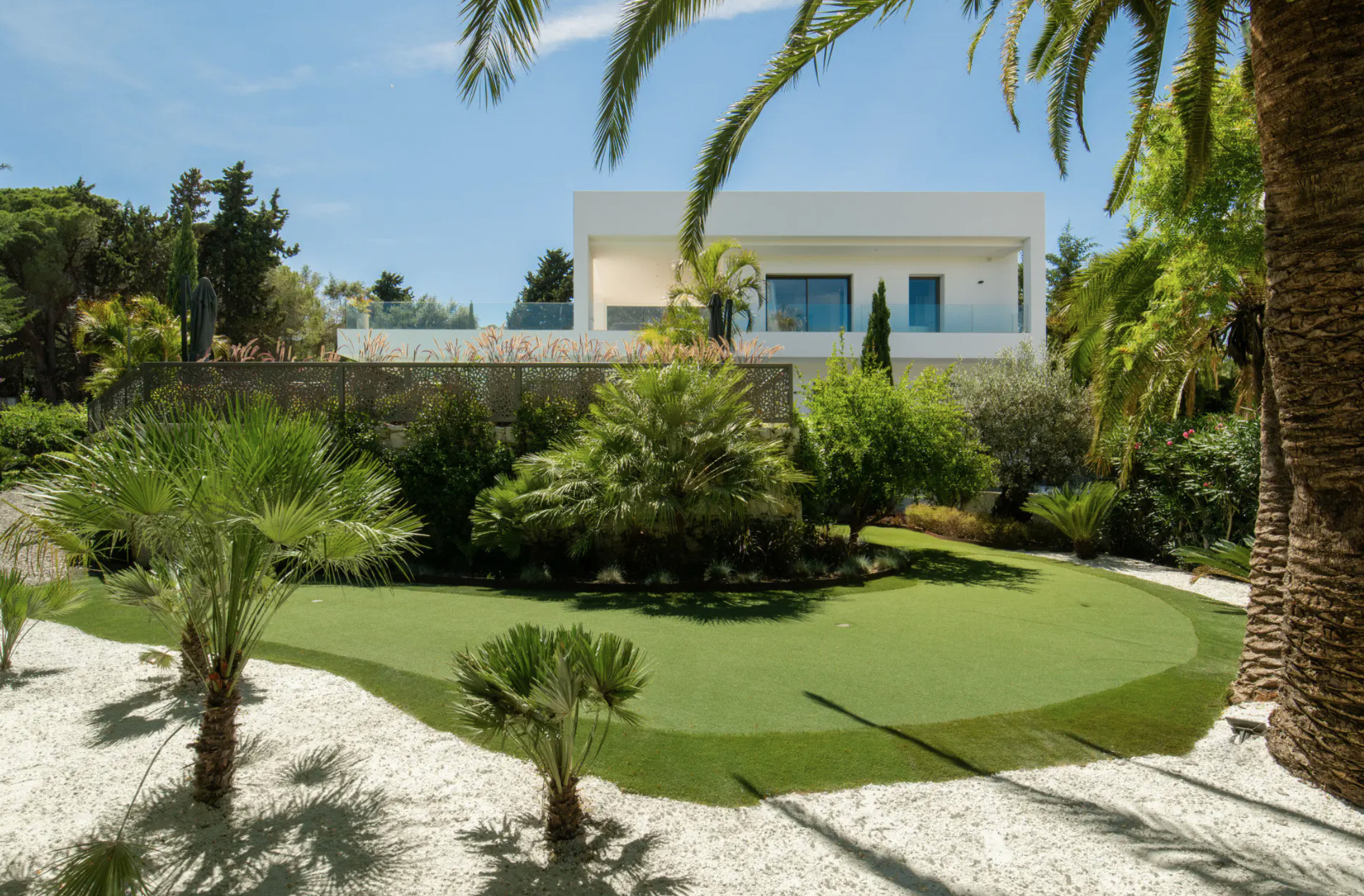 Gå udenfor for at opdage en smukt anlagt have og et indbydende poolområde, komplet med liggestole og rolige opholdszoner, der gør udendørs liv til en daglig glæde. Villaen byder også på en privat putting green og et børnelegområde - perfekt for familier eller golfentusiaster, der ønsker at holde sig aktive og underholdt under den andalusiske sol.