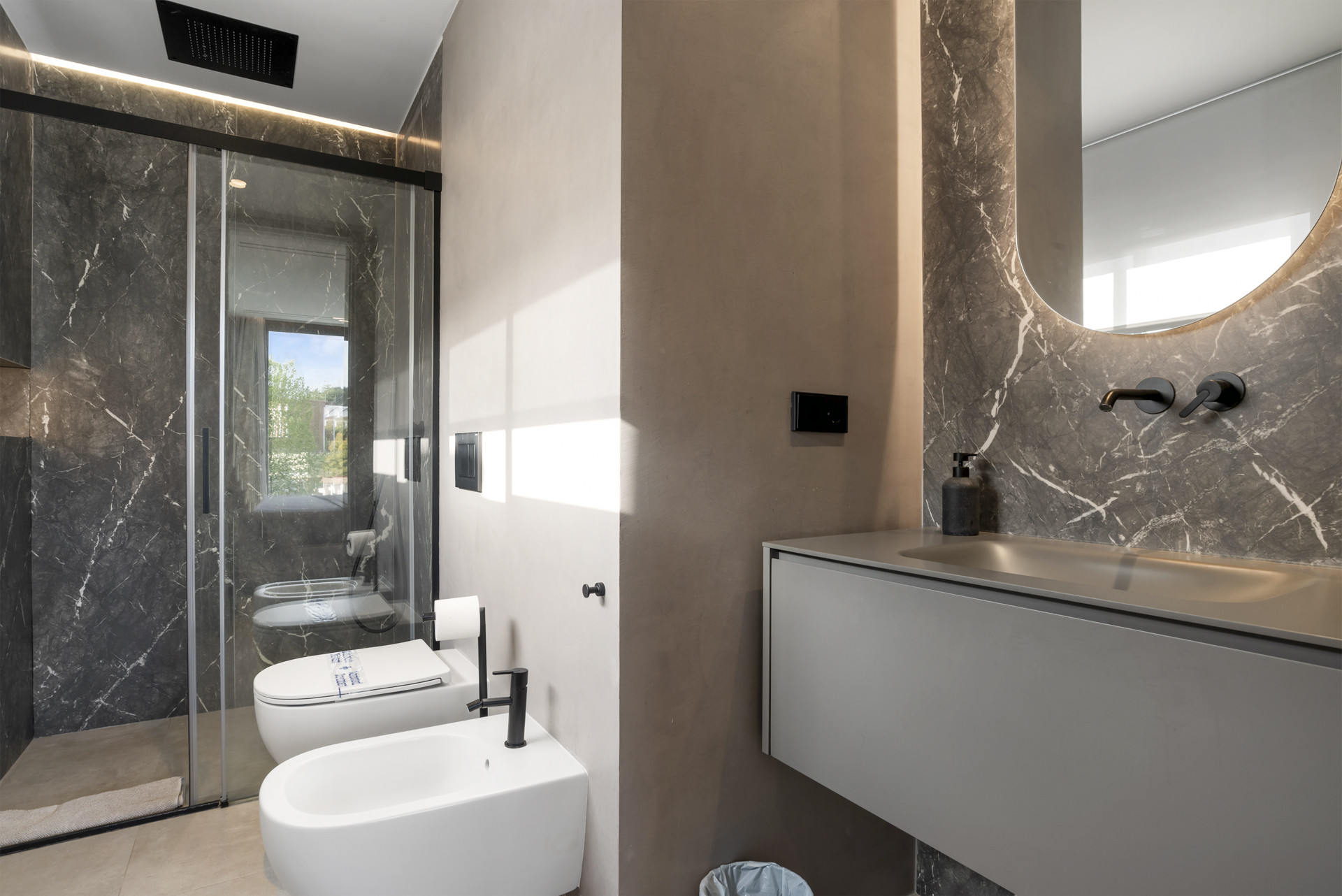 Indvendigt udfolder Villa Enso ubesværet elegance. Det åbne køkken flyder umærkeligt over i den primære opholdsstue og skaber et lyst og socialt hjerte i hjemmet - perfekt til fælles måltider og afslappede samtaler. Et separat TV/Biografrum ligger ved siden af det fuldt udstyrede fitnesscenter, begge på samme etage, hvilket giver alsidige rum til underholdning og velvære. Hvert soveværelse er omhyggeligt indrettet til hvile og privatliv, mens moderne detaljer og forfinede møbler løfter hvert et hjørne af hjemmet.