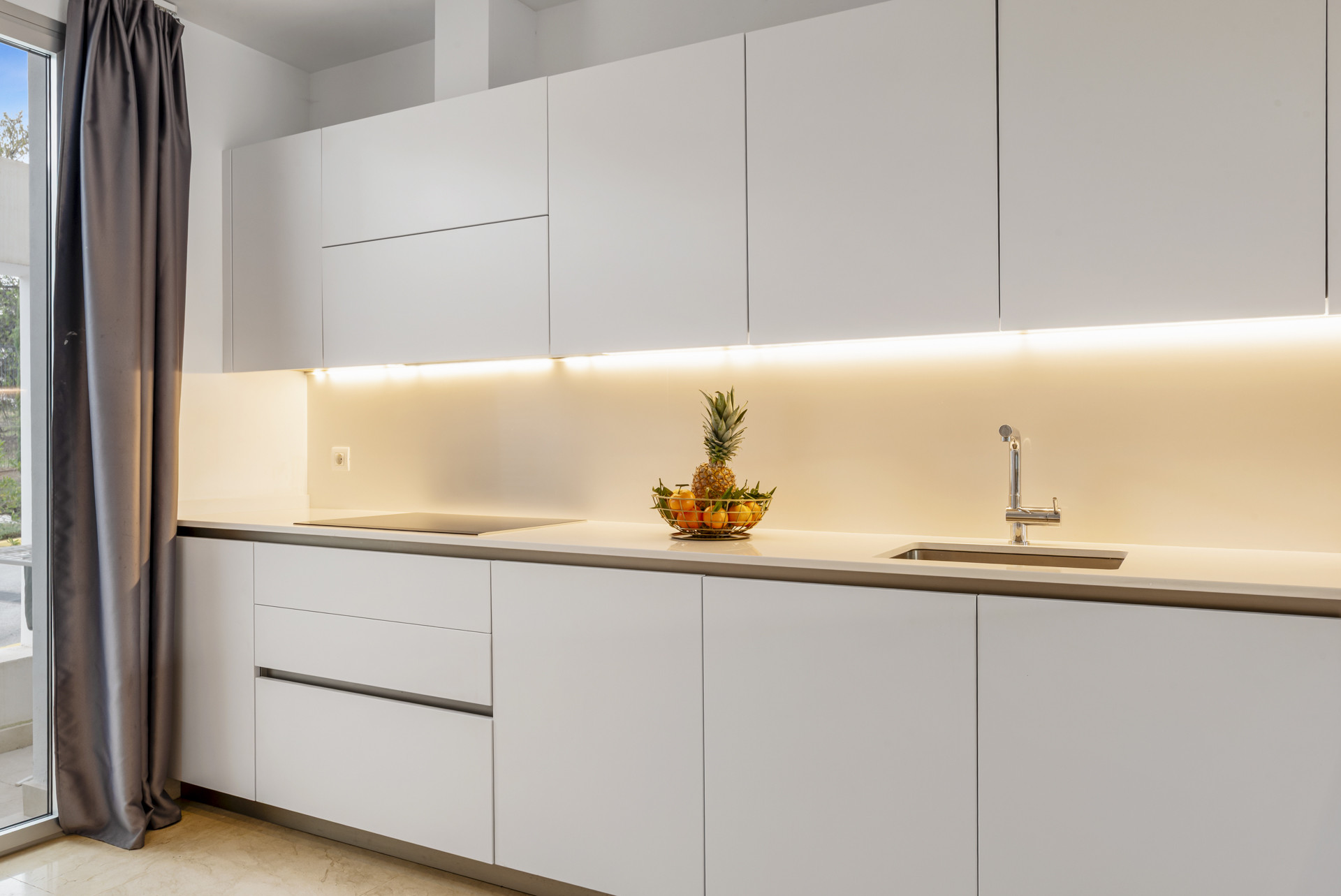 Im Inneren ist das Reihenhaus hell und einladend, mit einem warmen, von der Küste inspirierten Design, das seine unschlagbare Umgebung widerspiegelt. Der Hauptwohnbereich ist offen und luftig und verbindet sich nahtlos mit einer voll ausgestatteten Küche und einem Essbereich. Große Fenster fluten die Innenräume mit natürlichem Licht und rahmen die atemberaubenden Meeresblicke. Im Obergeschoss sind die vier Schlafzimmer komfortabel eingerichtet, mit weichen Leinen, eingebauten Kleiderschränken und beruhigender Dekoration, um erholsame Nächte zu gewährleisten.
