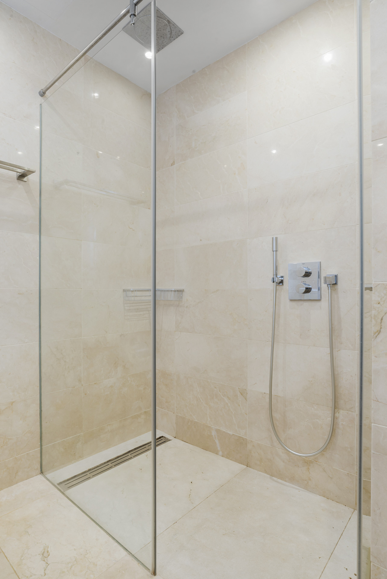 Im Obergeschoss befinden sich 3 Doppelschlafzimmer mit Einbauschränken in jedem Raum. Es gibt ein Doppelzimmer mit einem 140cm Bett und ein separates Badezimmer mit einer Regendusche. Das Hauptschlafzimmer verfügt über ein 160cm Bett, einen begehbaren Kleiderschrank, ein eigenes Badezimmer mit Dusche und Zugang zur Terrasse. Das dritte Schlafzimmer ist durch das Hauptschlafzimmer zugänglich. Es hat ein 160cm Bett und Zugang zur Terrasse.