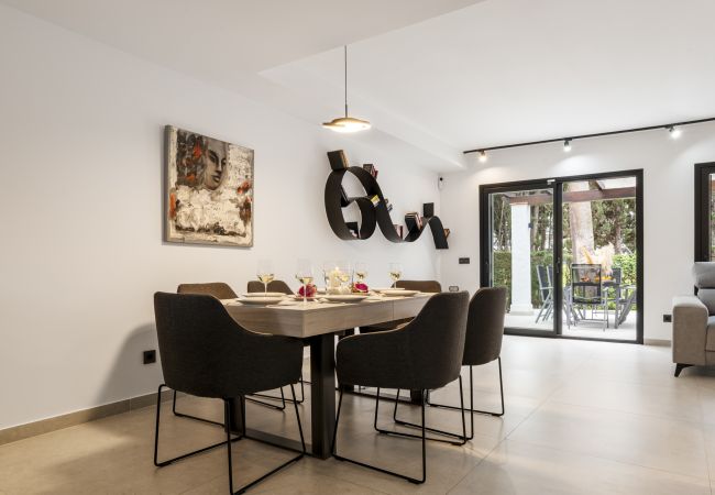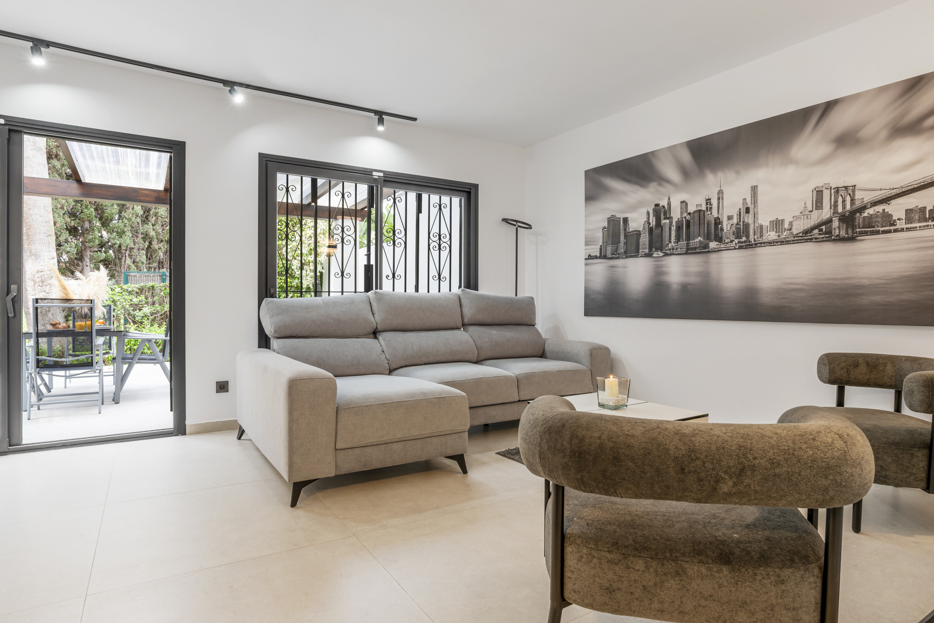 Diese elegante Stadtvilla wurde vollständig renoviert und verfügt über eine brandneue Küche und moderne Badezimmer. In beruhigenden neutralen Tönen gestaltet, bietet die Immobilie drei komfortable Schlafzimmer, die bis zu 6 Gäste unterbringen können, sowie eine außergewöhnliche Dachterrasse mit Grilleinrichtungen - perfekt für entspanntes Urlaubsleben in Marbella.