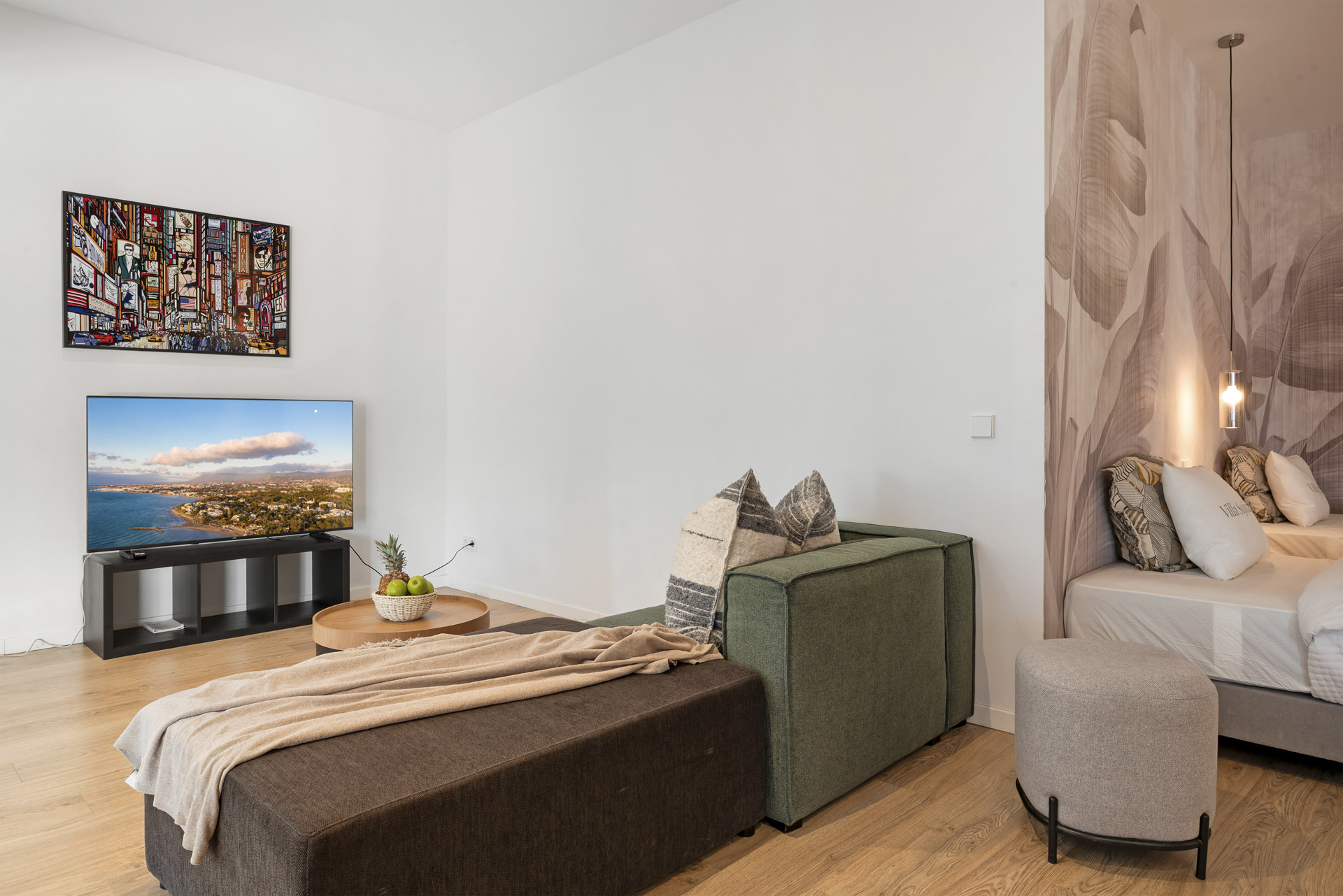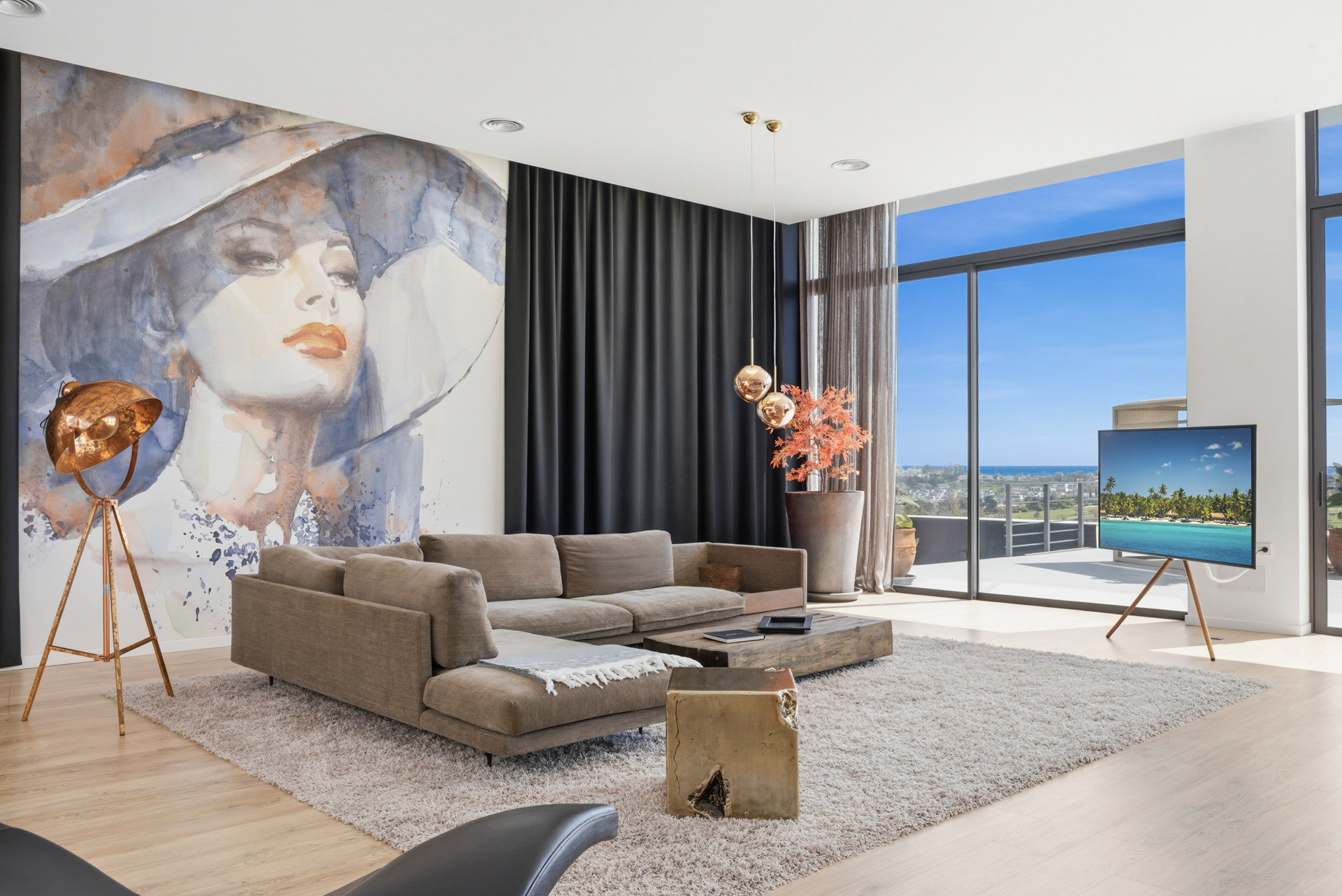Die hübsche und geräumige Unterkunft verfügt über 1.400 m² liegt direkt am Golfplatz und verfügt über eine tolle Aussicht auf den Strand / das Meer und die Berge.