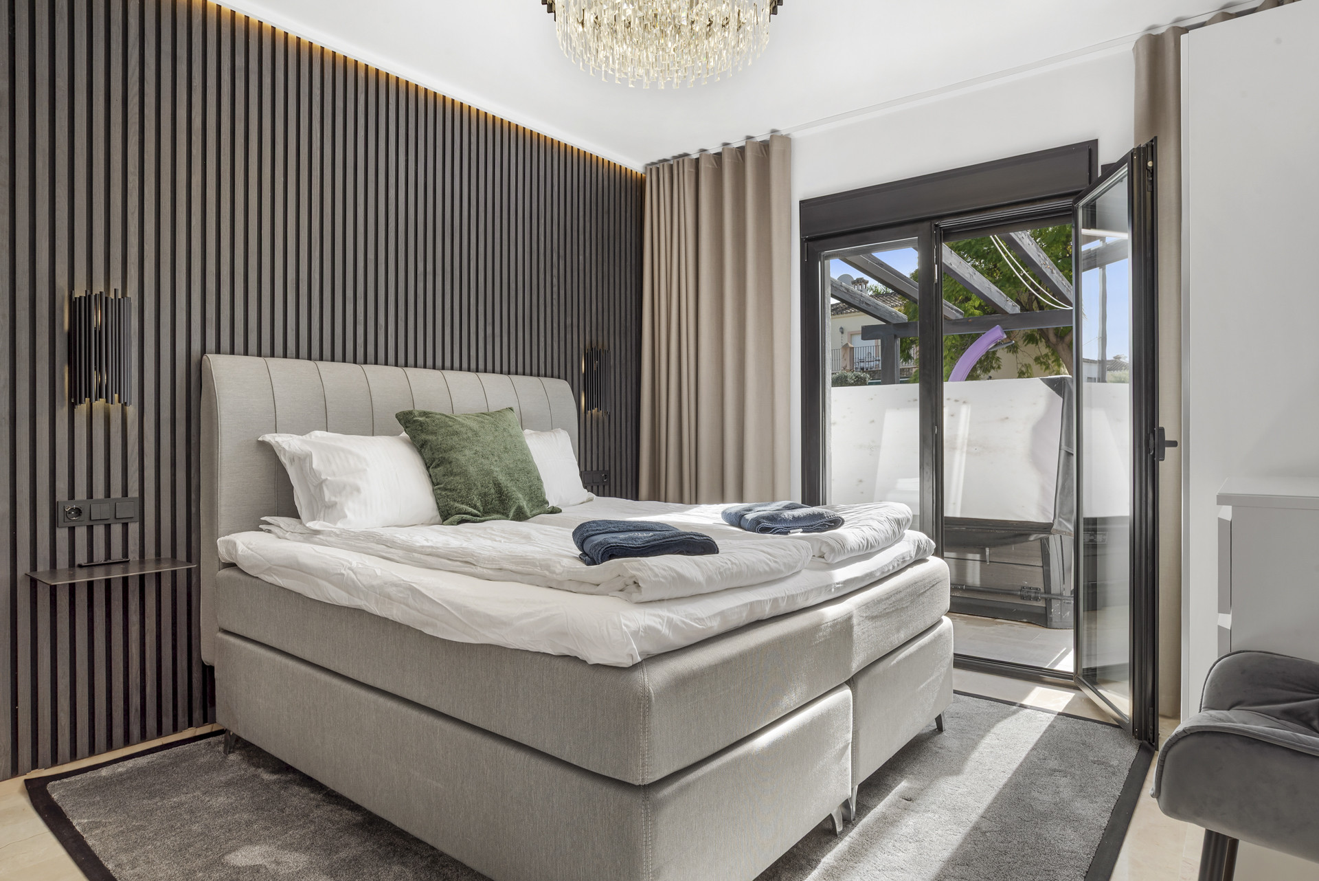 Der landschaftlich gestaltete Garten ist vollständig privat und wunderschön gepflegt, mit Palmen, Zitrusbäumen und eleganter Beleuchtung, die eine ruhige Urlaubsatmosphäre schaffen. Ob man sich auf der schattigen Lounge-Terrasse entspannt, ein Glas Wein am Pool genießt oder ein Abendessen bei Sonnenuntergang veranstaltet, jede Ecke der Immobilie ist auf Komfort und Vergnügen ausgelegt.
