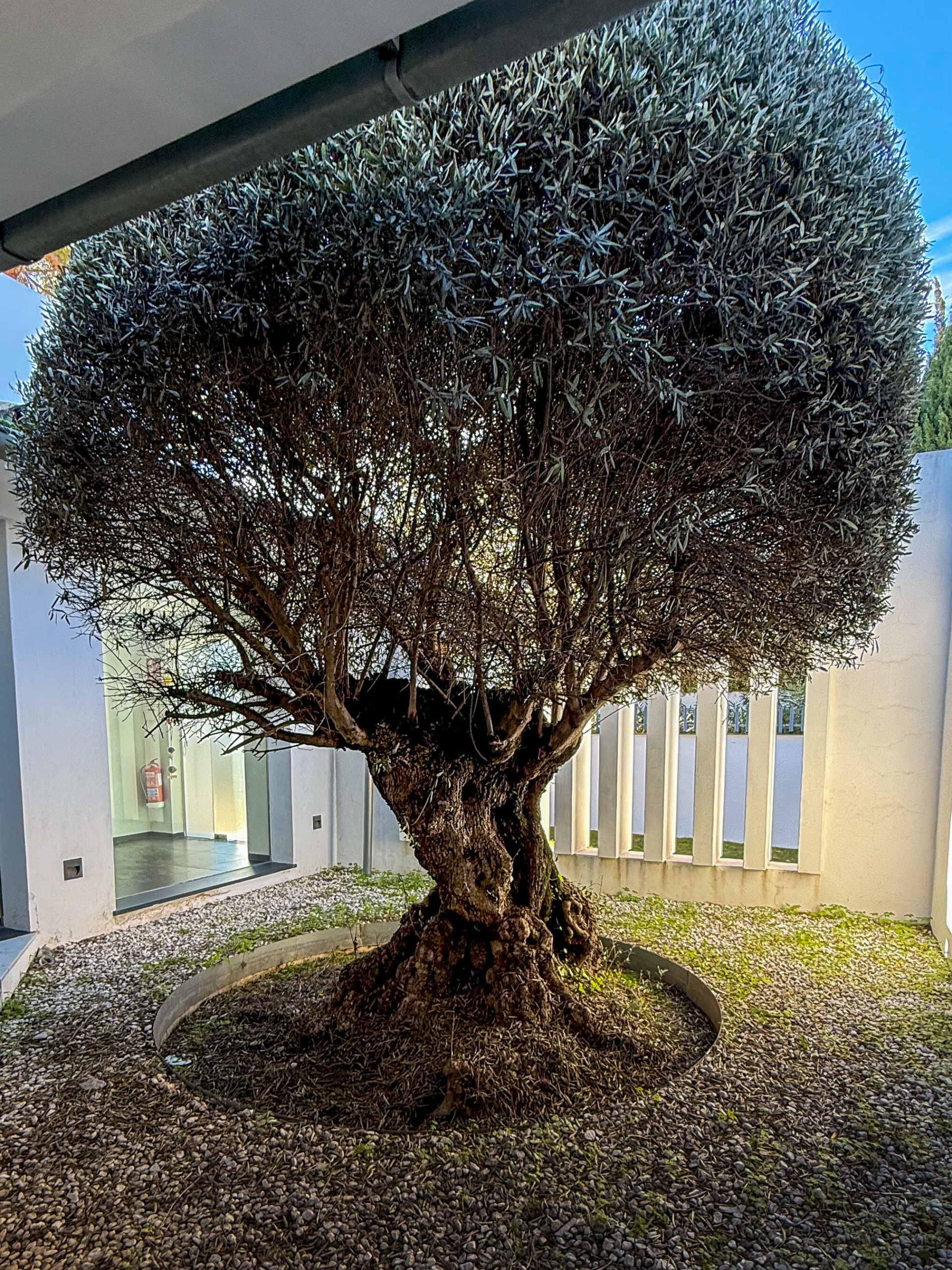 Beim Betreten der Villa wird ein 400 Jahre alter Olivenbaum innerhalb der Konstruktion in Ruhe gelassen.