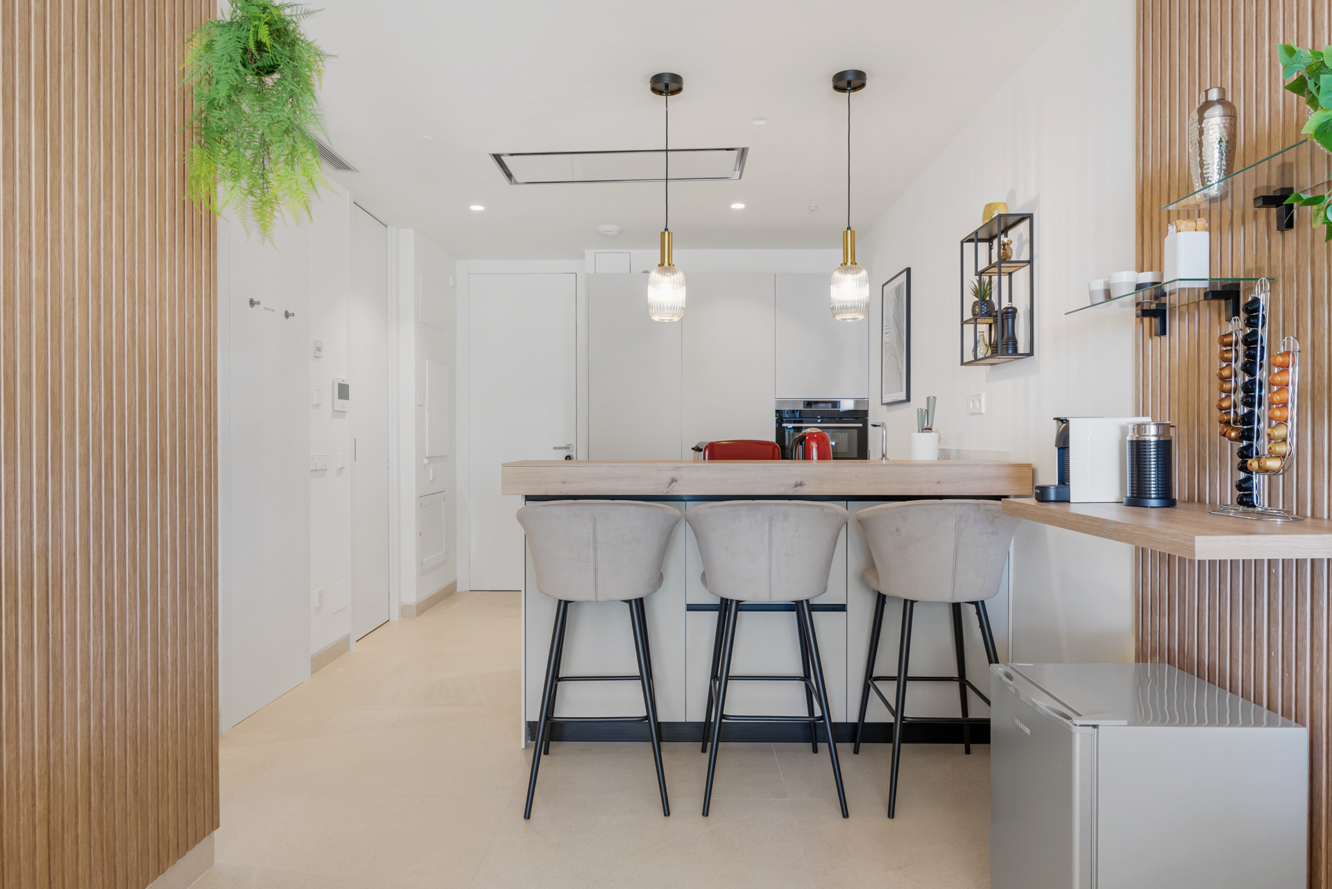 Espacio Elegante para Vivir: El apartamento cuenta con un dormitorio con baño en suite, combinando construcción de primera calidad, diseño elegante y confort moderno. La distribución de la cocina abierta asegura que siempre seas parte de la conversación, haciendo de la cocina un asunto social.
