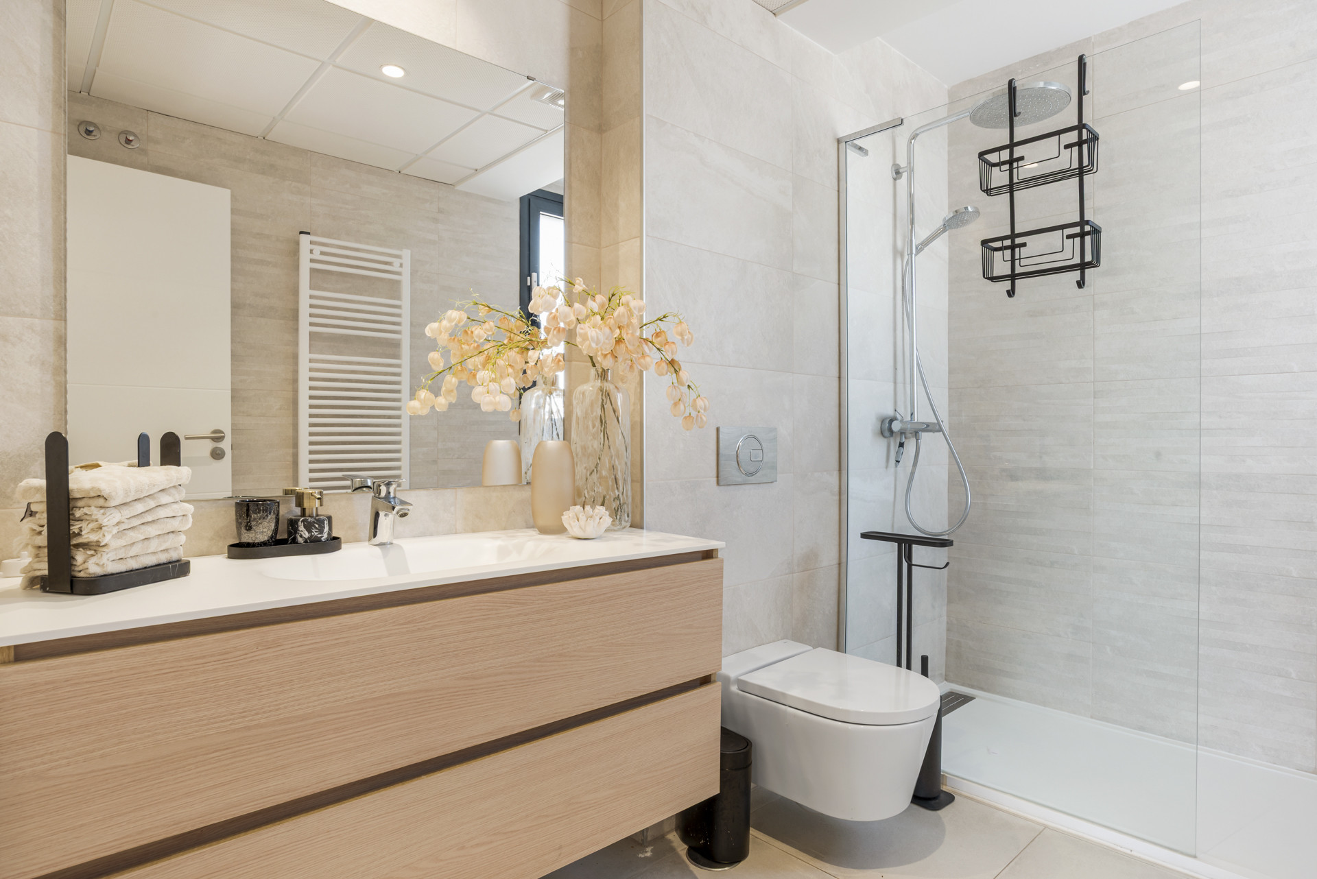 Con una superficie de 114 m², el apartamento está diseñado para una elegancia sin esfuerzo. El espacio de estar de planta abierta cuenta con carpintería a medida, una cocina completamente equipada y de líneas modernas, y una chimenea eléctrica, creando una atmósfera cálida y acogedora. Una chimenea adicional de bioetanol en la terraza le permite disfrutar de la brisa marina con comodidad acogedora, sin importar la temporada. Las puertas de vidrio de suelo a techo enmarcan las impresionantes vistas panorámicas, integrando perfectamente los espacios interiores y exteriores.