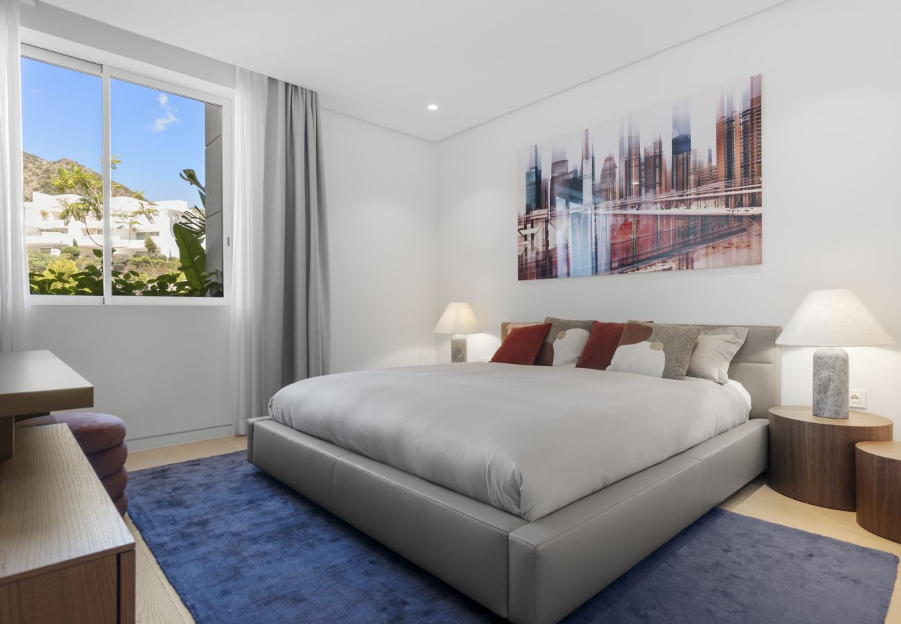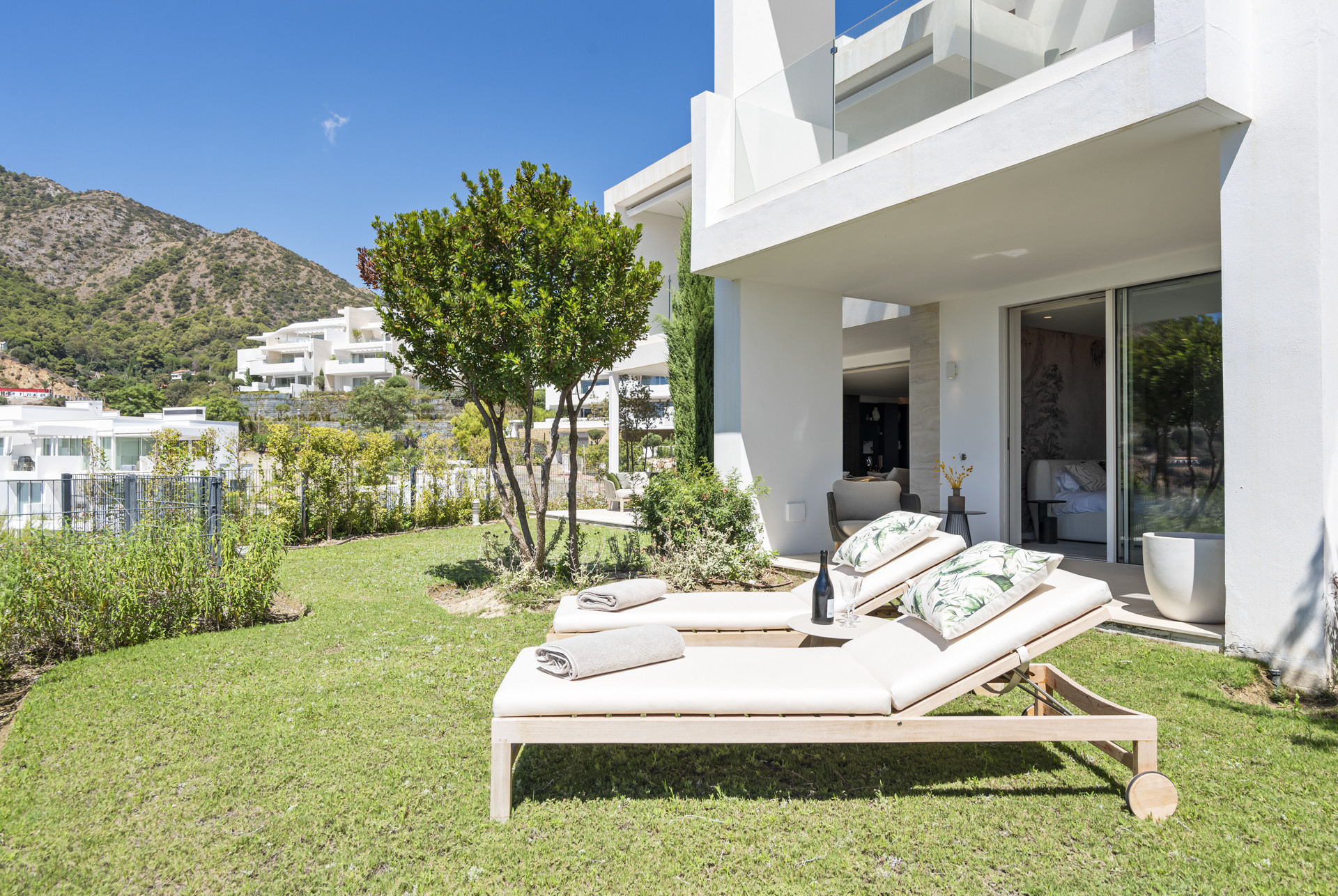 La Perla de Palo Alto es un inmaculado apartamento de 3 dormitorios con generosos espacios exteriores e interiores, acabados increíbles de los diseñadores de interiores Gunni & Trentino, y vistas panorámicas a las colinas andaluzas y al Mar Mediterráneo.