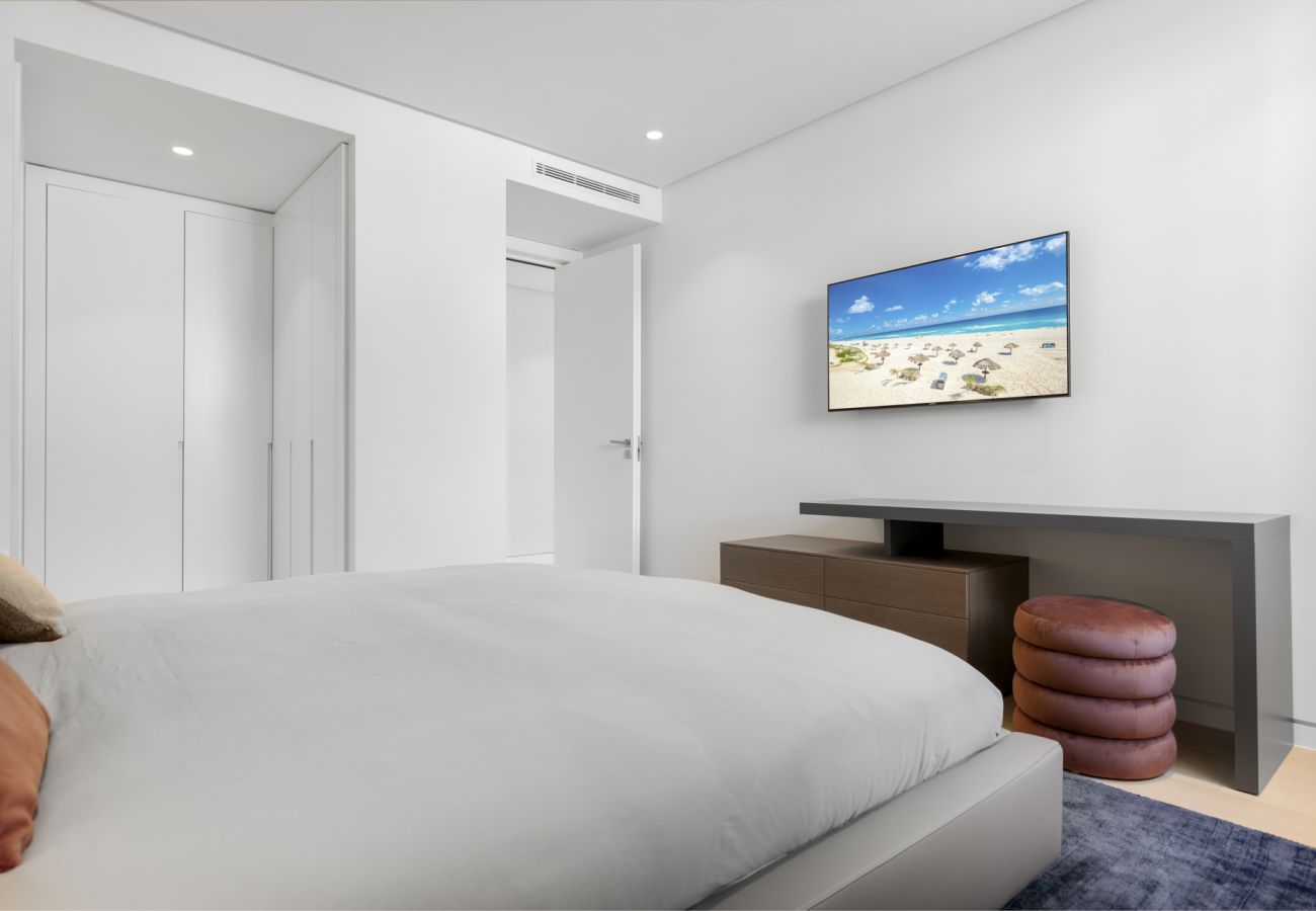 El dormitorio principal tiene una cama king size, un baño en suite con ducha y un televisor inteligente. Tiene acceso a la terraza con jacuzzi.