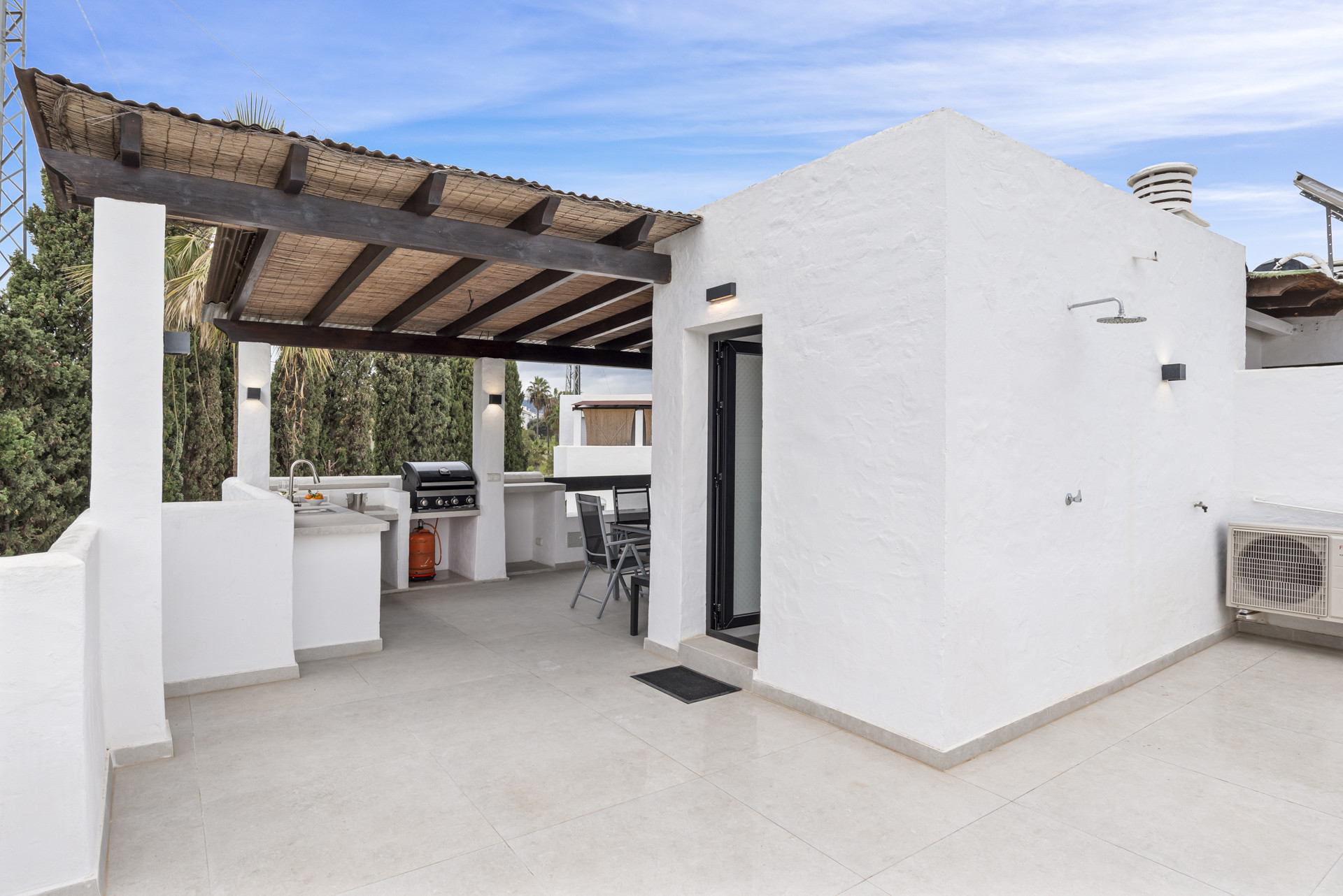Esta elegante casa adosada ha sido completamente renovada y cuenta con una cocina completamente nueva y baños modernos en toda la propiedad. Decorada en tonos neutros relajantes, la propiedad ofrece tres dormitorios cómodos que pueden alojar hasta 6 huéspedes, junto con una terraza en la azotea excepcional equipada con instalaciones de barbacoa, perfecta para unas vacaciones relajadas en Marbella.