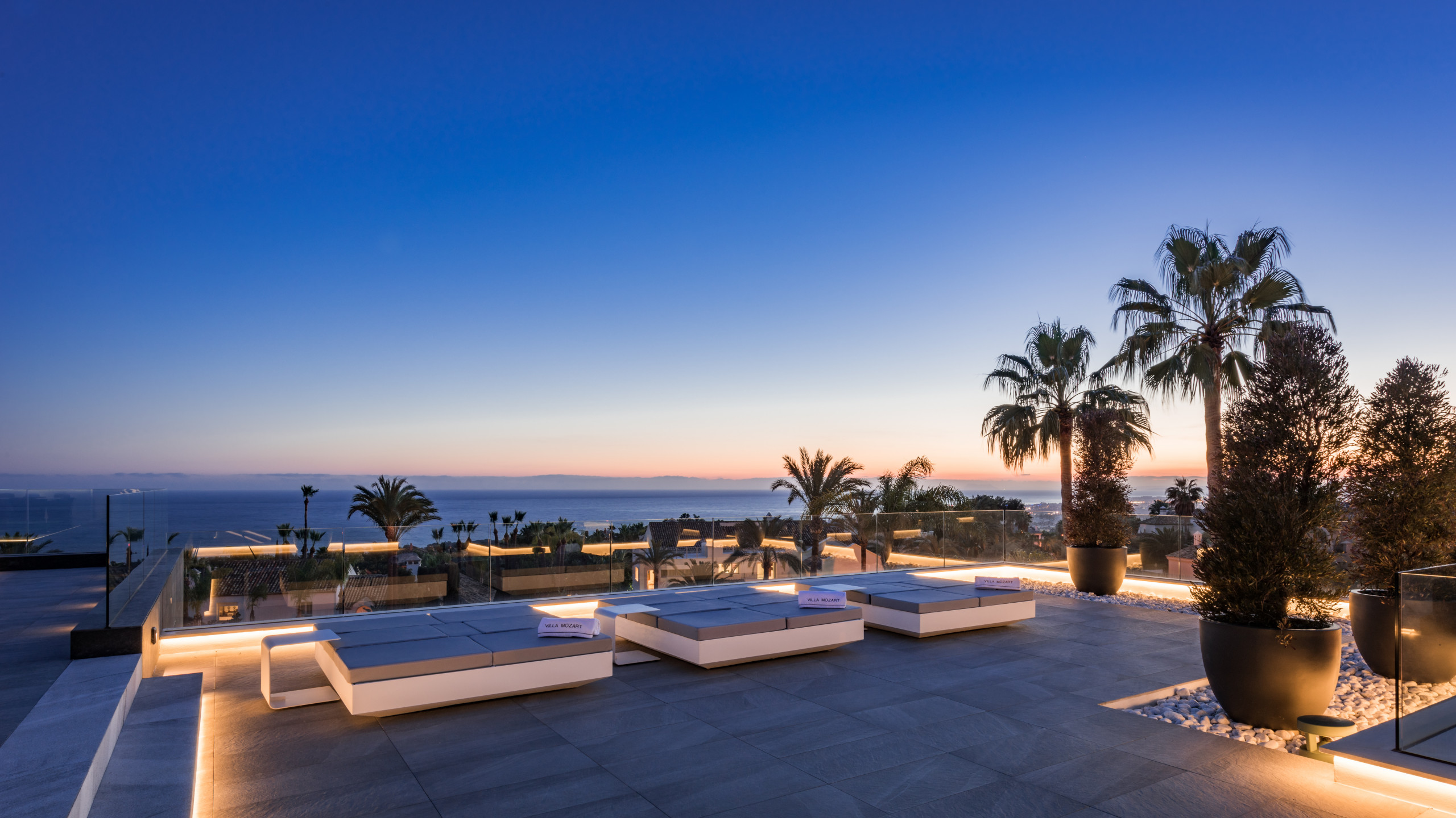 La villa en Marbella posee 6 dormitorio(s) y capacidad para 12 personas. Alojamiento de 1.265 m² amueblado con gusto y totalmente equipado, con vistas a la montaña y al jardín. Se encuentra a 2 km de la estación de autobuses, 2 km del restaurante, 3 km de la cafetería, 3 km del supermercado, 4 km de la playa de arena, 5 km de la ciudad, 6 km del hospital, 7 km del campo de Golf, 38 km del parque acuático, 54 km del aeropuerto, 54 km del aeropuerto internacional y está ubicado en una zona ideal para familias y en el complejo residencial.Dispone de ascensor, jardín, mobiliario jardín, parcela vallada, terraza, lavadora, secadora, barbacoa, plancha, acceso internet (wifi), secador, balcón, gimnasio, alarma, sauna, jacuzzi, calefacción central, aire acondicionado en todo el alojamiento, piscina privada, garaje en mismo edificio, Televisión, tv satelite.La cocina americana, de inducción, está equipada con nevera, microondas, horno, congelador, lavavajillas, vajilla/cubertería, utensilios/cocina, cafetera, tostadora, hervidor de agua, exprimidor y batería de cocina.