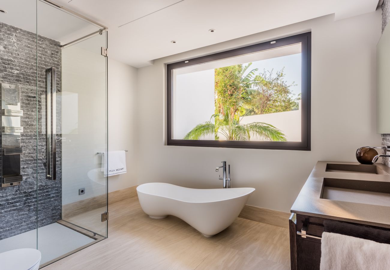 La habitación principal es espaciosa con un excelente baño en suite y un vestidor con vistas a la zona de la piscina. En total, hay 5 dormitorios. Otro dormitorio con baño en suite está ubicado en la zona del sótano con acceso directo a la zona de la piscina.