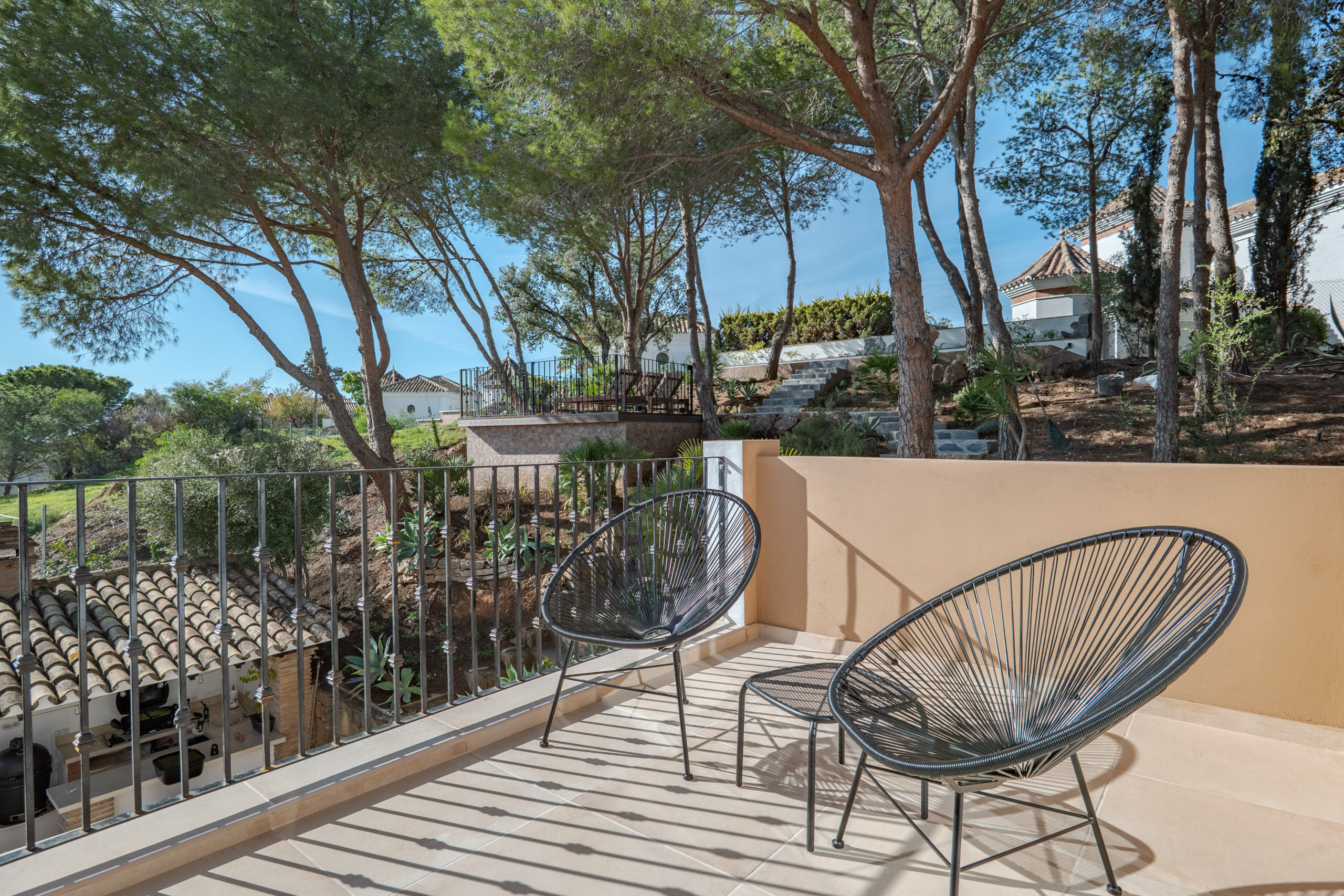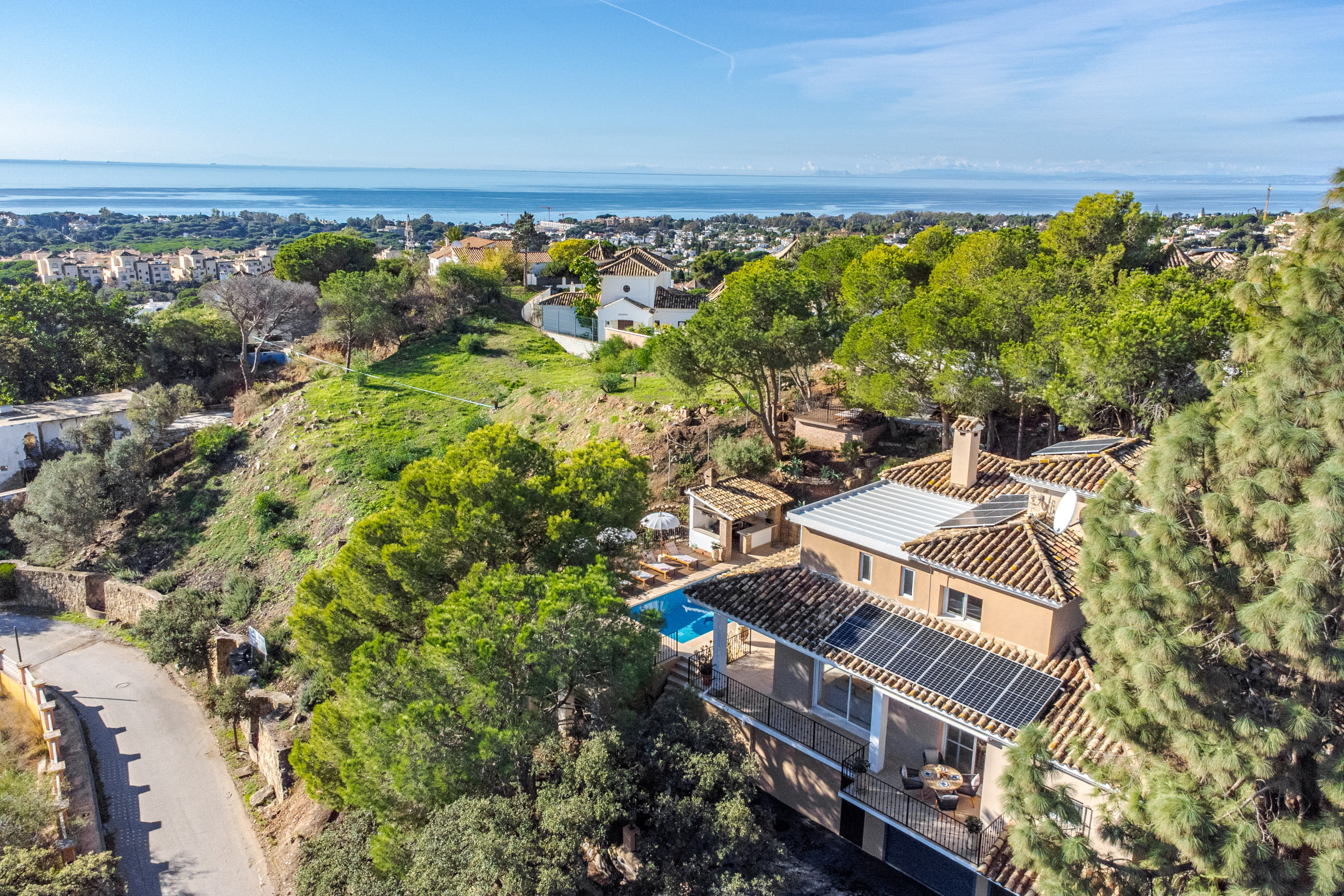 Diseñada para un estilo de vida mediterráneo relajado, la propiedad presume de vistas panorámicas al mar que pueden disfrutarse desde las áreas de estar interiores y los generosos espacios exteriores. La villa ofrece múltiples áreas de estar al aire libre, perfectas para relajarse durante todo el día, así como tumbonas junto a la piscina privada para tomar el sol de Marbella.