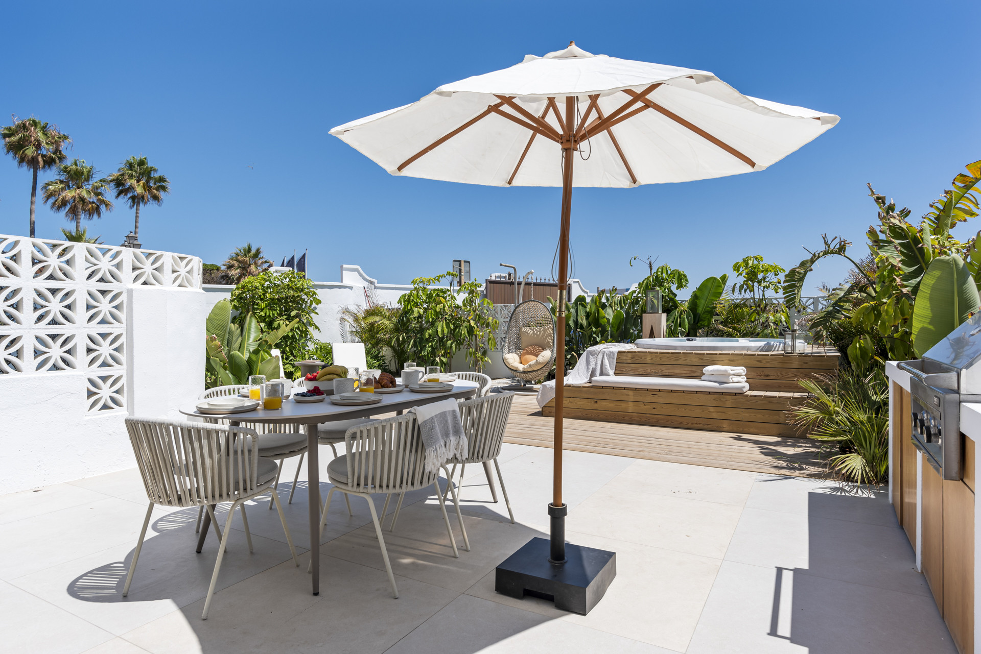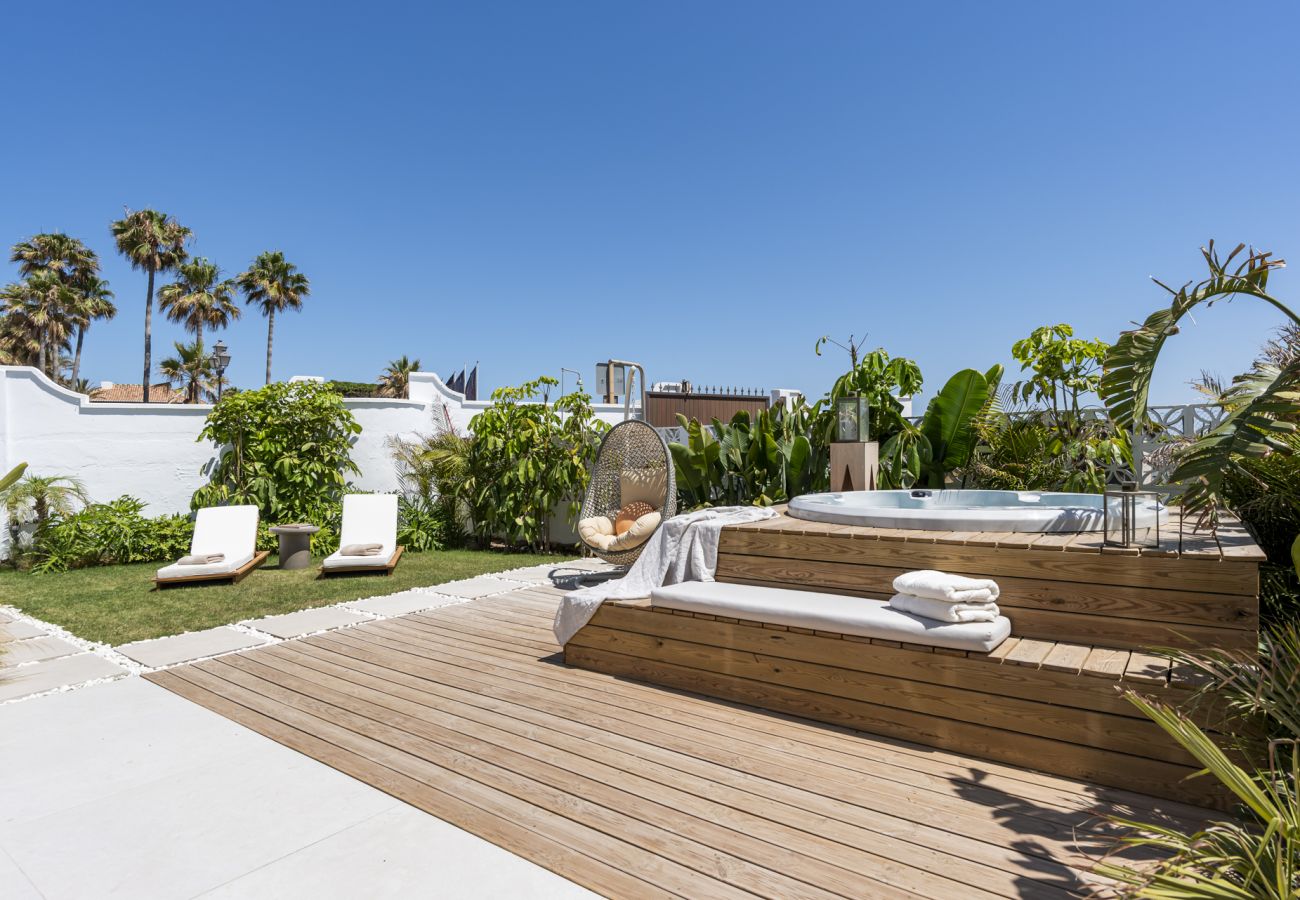 Welcome to Casa Playa Bella, a brand new and stunningly designed townhouse located in the beautiful residential area of Rosario, Marbella. Just 10 meters from the gate entrance to the beach, this home offers the ultimate beachside living experience.