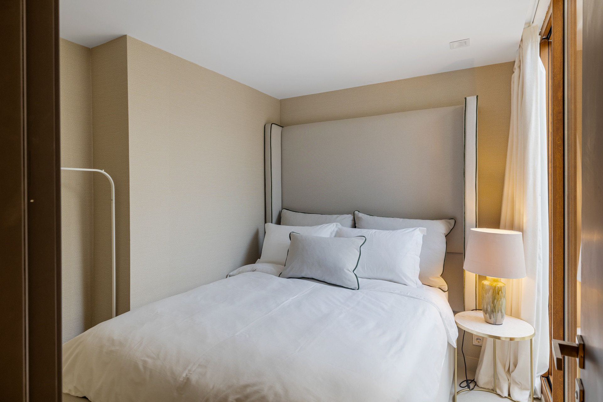 La quatrième chambre est située au troisième étage. C'est une chambre twin (2 x 90 cm), avec une salle de bain et une terrasse. (Veuillez noter qu'il y a une hauteur restreinte.)