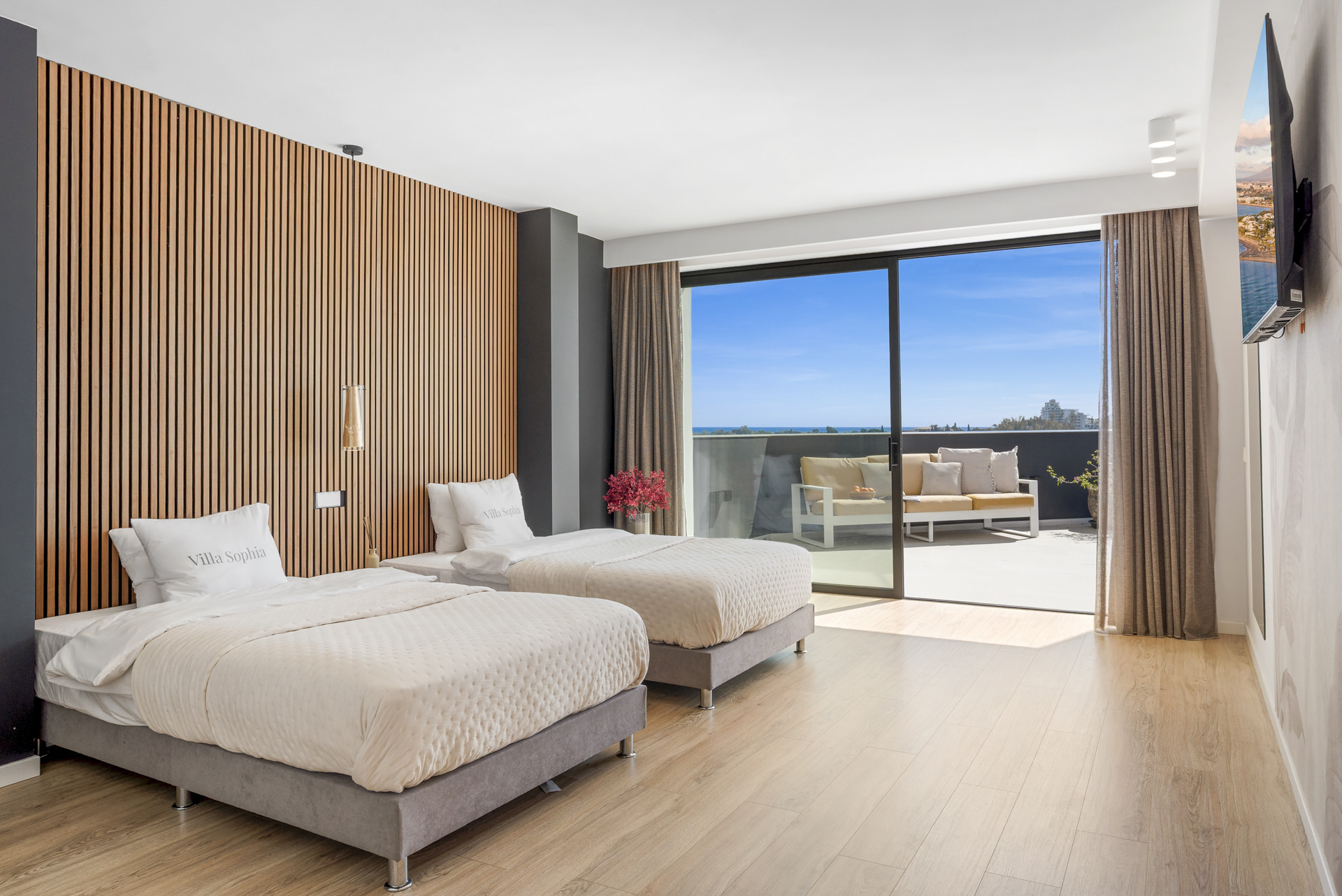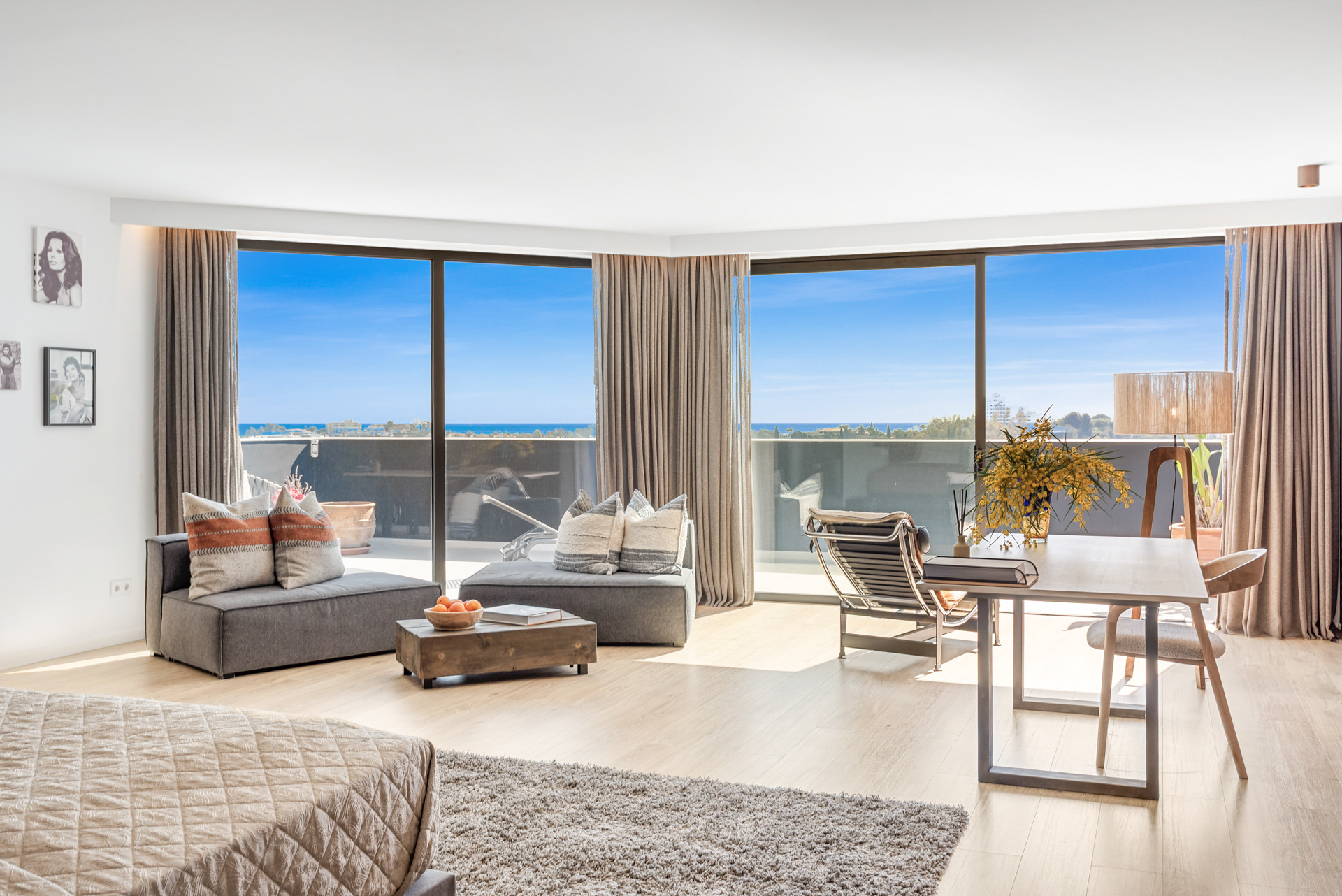 Logement de 1 400 m² joli et vaste, situé en première ligne de golf, avec vue sur la mer et la montagne.