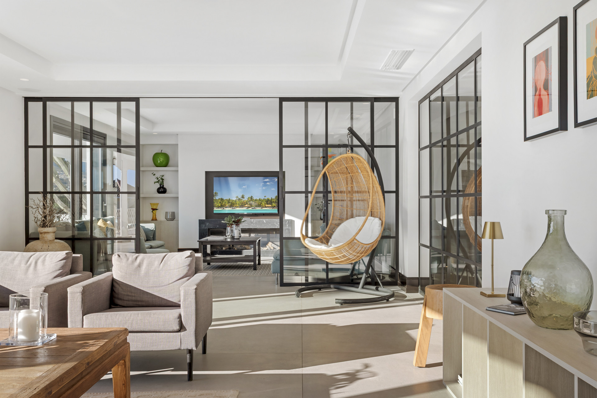 Les intérieurs sont conçus avec soin, avec des tons neutres, des textures douces et un espace de vie ouvert. La cuisine est entièrement équipée d'appareils modernes et se connecte à une zone de repas confortable et un salon, ce qui la rend idéale pour recevoir ou pour des soirées tranquilles. Chacune des cinq chambres offre un espace serein pour se détendre, tandis que les trois salles de bains - finies dans un style propre et contemporain - assurent le confort et la commodité des invités. Il y a également un garage fermé pour plus de sécurité et de praticité.