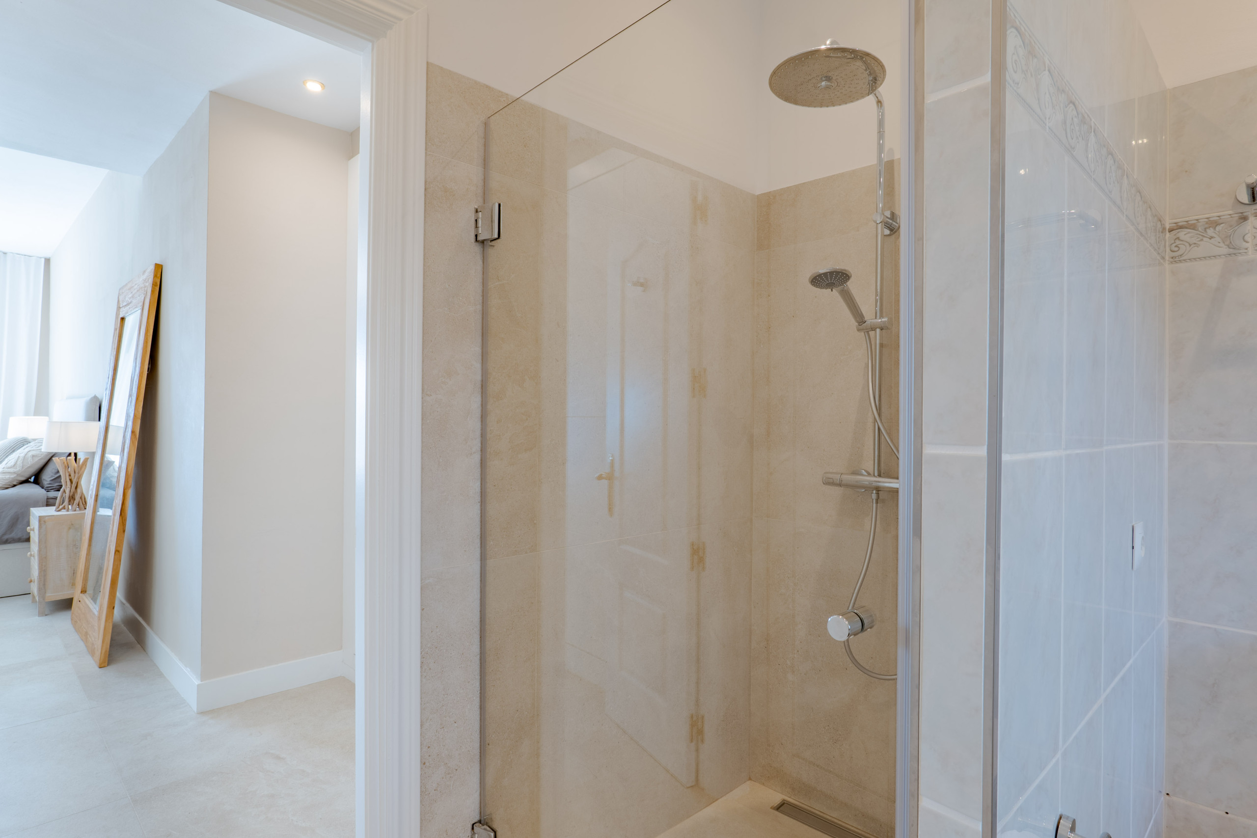 La villa dispose de quatre chambres spacieuses, toutes équipées de placards intégrés. Trois chambres possèdent des salles de bains attenantes, tandis que la quatrième chambre bénéficie d'une salle de bains privative séparée, offrant un excellent confort et une intimité parfaite pour les familles ou groupes d'amis. Des toilettes supplémentaires pour les invités ajoutent encore plus de commodité.