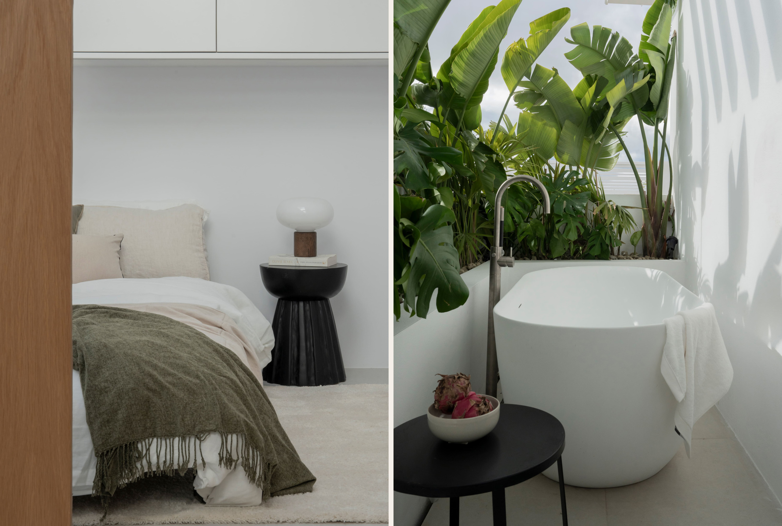 Divertissez-vous avec aisance dans l'espace de vie ouvert et spacieux, ancré par une cuisine Miele élégante et entièrement intégrée et réchauffé par une cheminée accueillante. De grandes portes coulissantes en verre vous mènent vers la caractéristique principale de la villa - une piscine à débordement en marbre surélevée, encadrée par une verdure tropicale et des pierres naturelles saisissantes. La cuisine extérieure et la terrasse à manger créent le cadre parfait pour des après-midis détendus ou des dîners au coucher du soleil sous les étoiles, tandis que les garde-corps en verre préservent les vues panoramiques sans interruption.