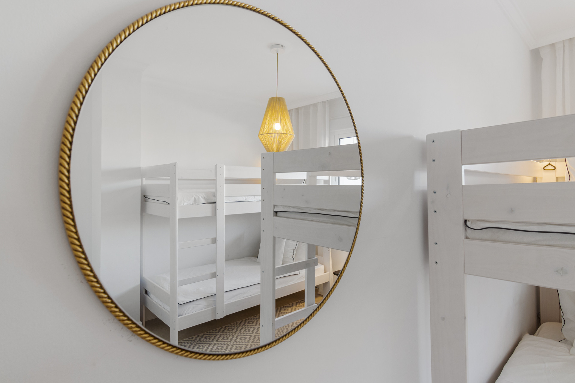 The apartment features 2 bedrooms and 2 bathrooms. The master bedroom steps out onto the balcony and practically allows you to wake up with the view of the Mediterranean. The second bedroom is more designed for the kids featuring a bunk bed with a pull out bed and one additional single bed.