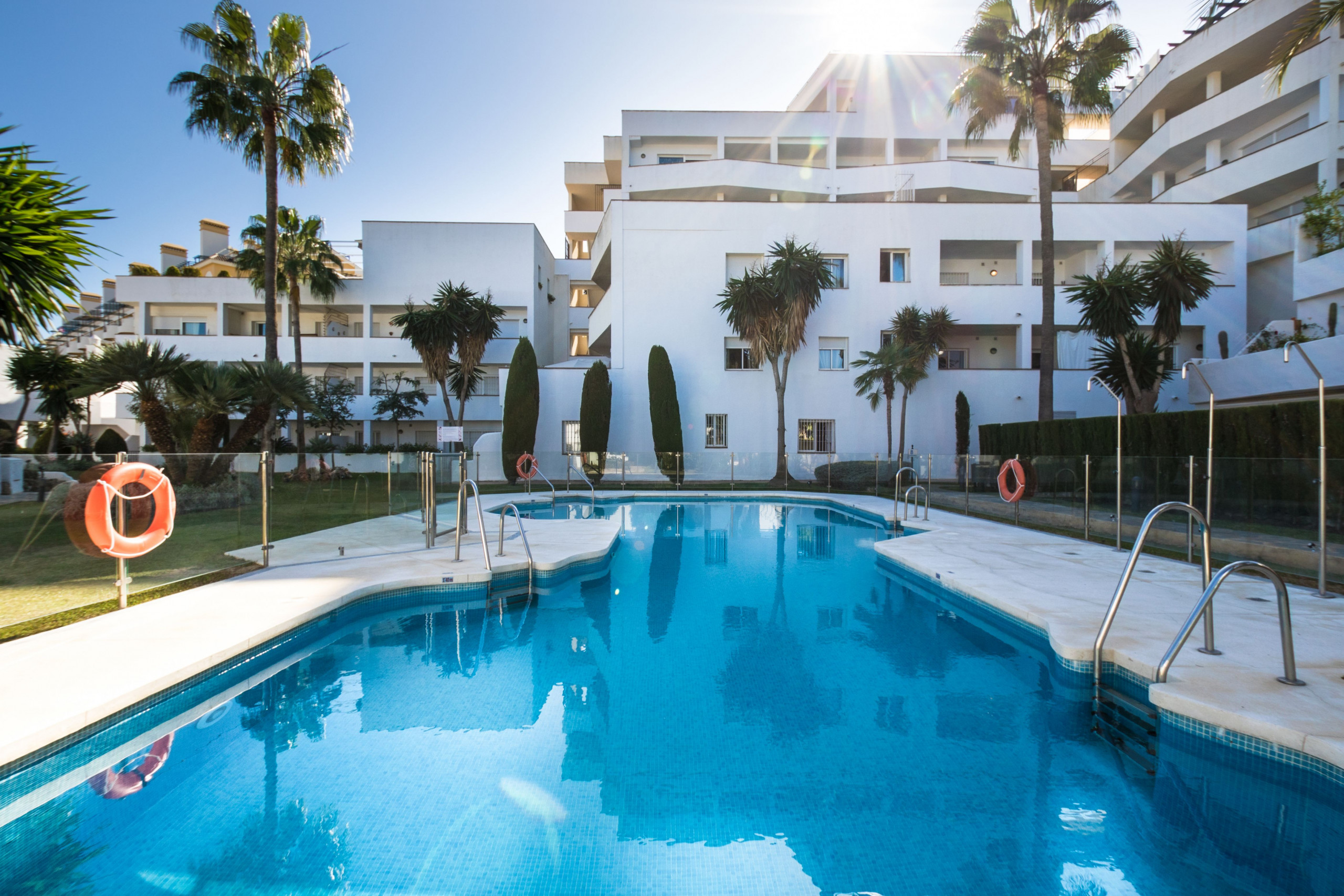 The location of this apartment really can’t be beaten, close to it all yet in a quiet residential space. Puerto Banús is only a 15 minutes’ walk away, so is the beach. You have a few restaurants and bars within 5 minutes walk, along with a supermarket. Marbella Old Town is 10 minutes’ drive away, and you have 4 world-class golf courses less than 5 minutes’ drive away (Aloha, Las Brisas, Los Naranjos, and La Quinta).