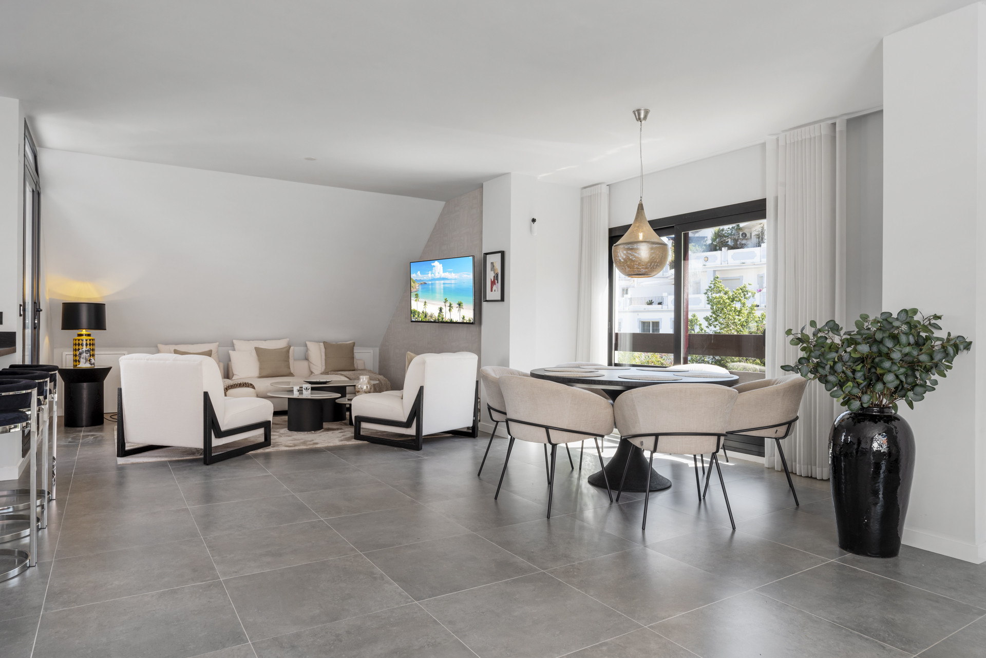 Welcome to Penthouse Saga, a bright and stylish 4-bedroom, 2-bathroom home located in the heart of Nueva Andalucía, within the highly sought-after gated community of La Maestranza. This welcoming apartment is designed for comfort, convenience, and relaxed Mediterranean living. Set in one of Marbella’s most popular residential zones, it offers a peaceful escape while still being just moments away from the vibrant energy of Puerto Banús, the beaches, and a host of top amenities.