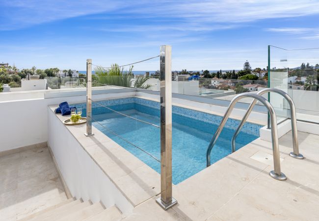 The true highlight awaits upstairs: a spectacular private rooftop terrace with a plunge pool, sunbeds, dining area, and furniture. From here, enjoy breathtaking open views and soak up the Marbella sunshine in complete privacy.