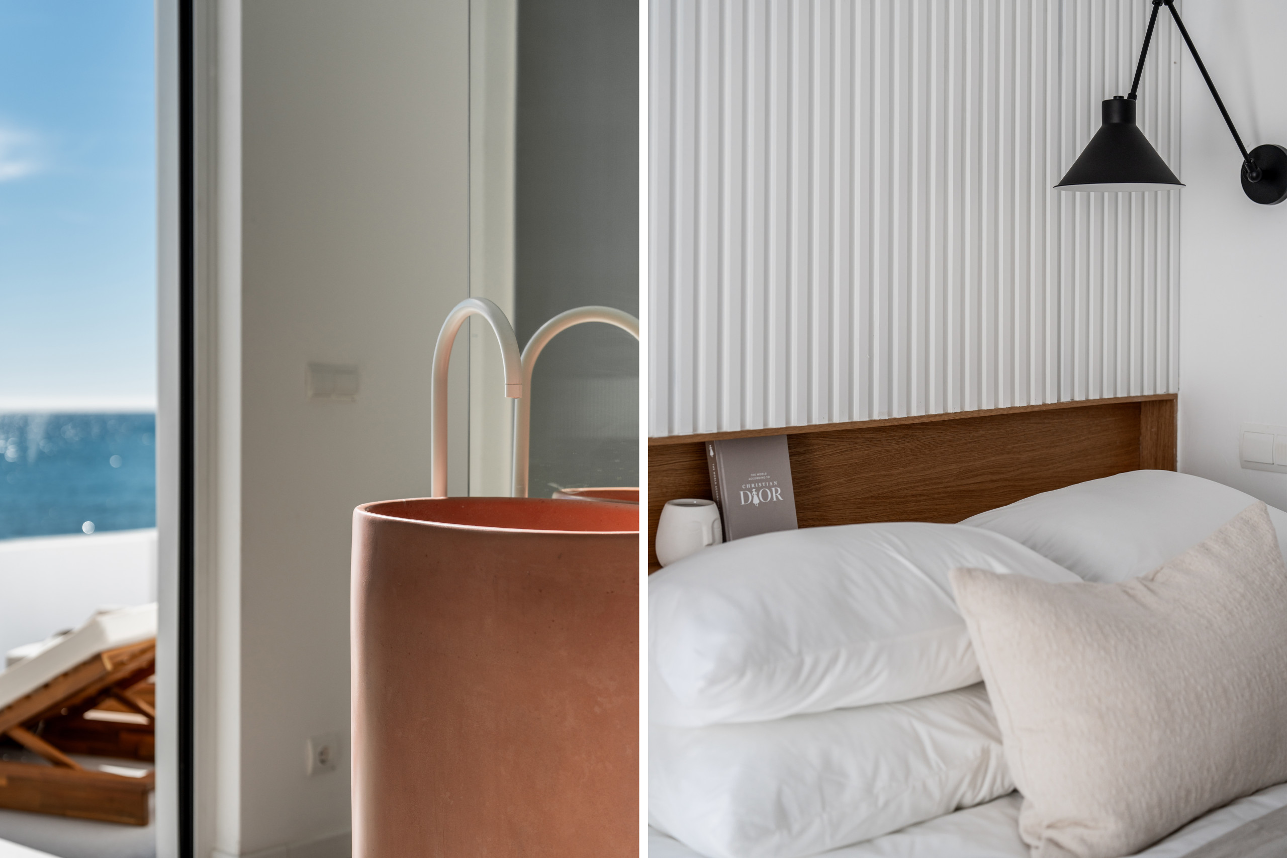 The third level houses the cozy third bedroom, with a half bathroom conveniently located across from it. This level also features an upper terrace, offering tailored views of the Mediterranean Sea and a cozy spot for late-night lounging under the stars.