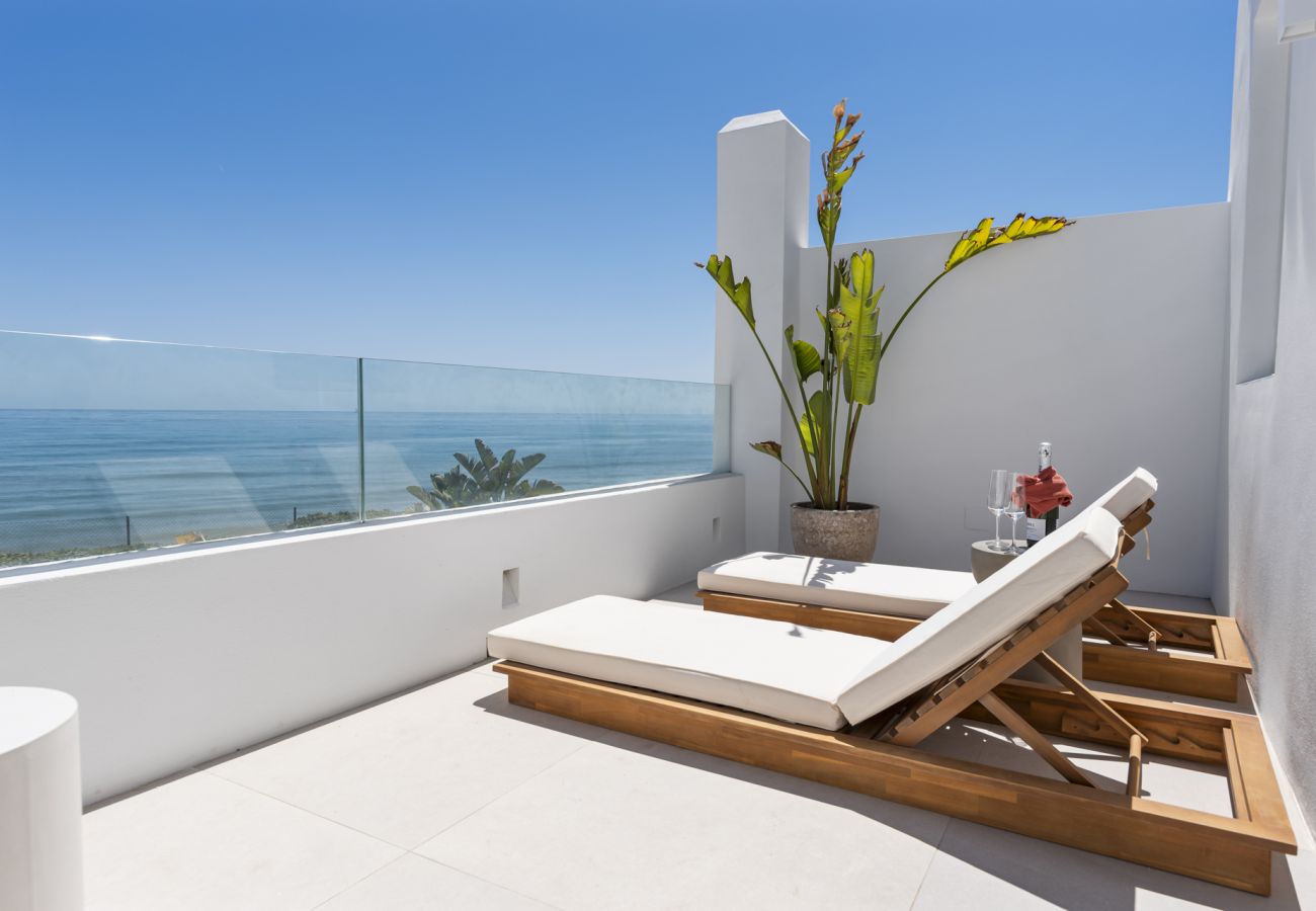 Welcome to Casa Playa Bella, a brand new and stunningly designed beach side townhouse located in the beautiful residential area of Rosario, Marbella. Just 10 meters from the gate entrance to the beach, this home offers the ultimate beachside living experience.