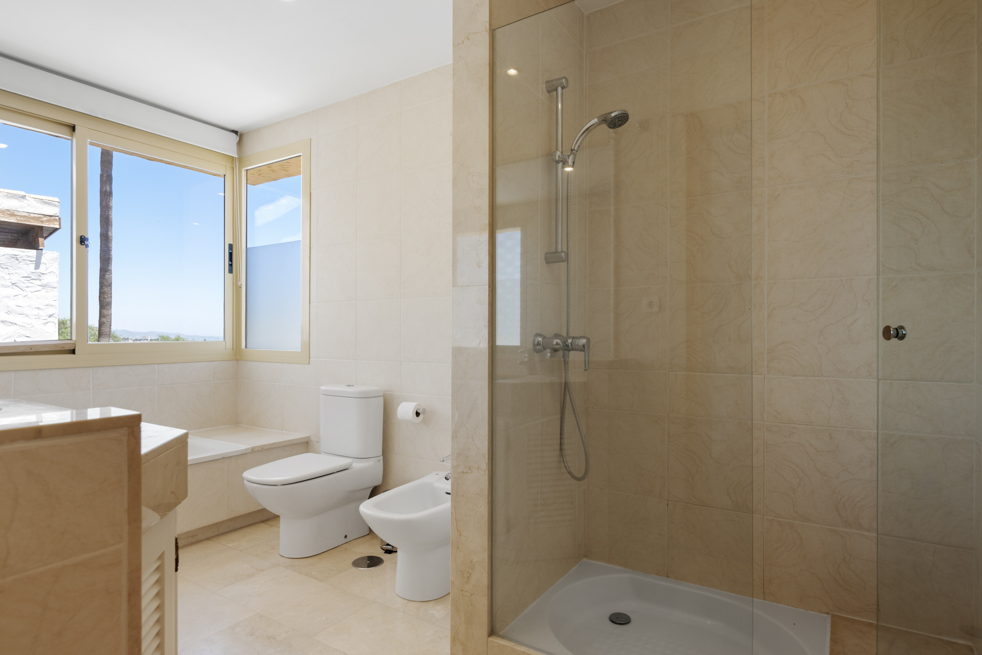Outside, the villa boasts a striking infinity-edge pool overlooking the hills, with ample sun loungers and shaded seating areas for day-to-night relaxation. The pool can also be heated on request, offering year-round enjoyment. With lush landscaping and total serenity, Villa Imagine is your private escape in one of the Costa del Sol’s most exclusive enclaves—just a short drive from Marbella, yet a world away in feel.