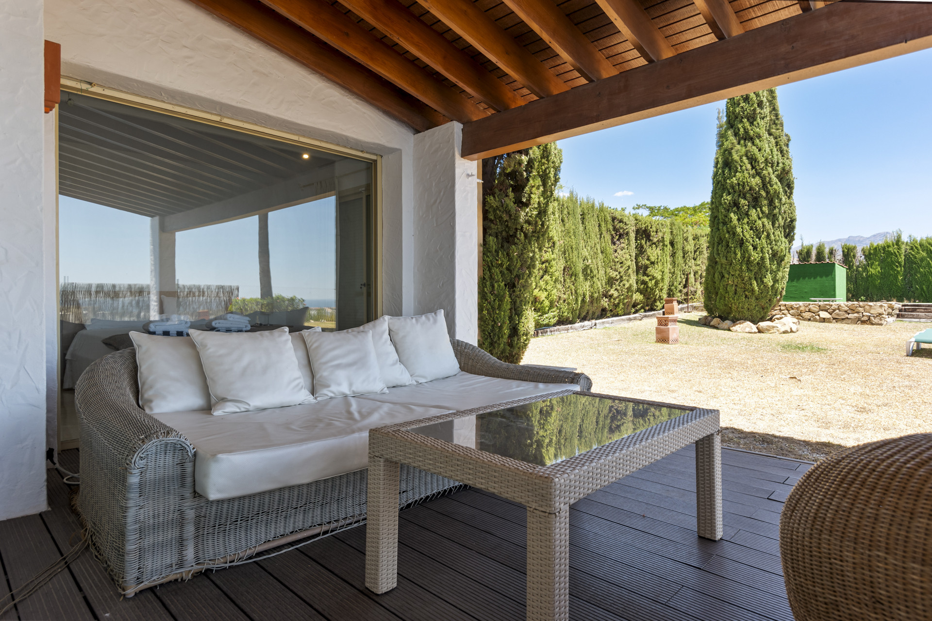 Villa Aguacate is a stunning 4-bedroom (5-bed) villa spanning 350 sqm, nestled in the serene residential enclave of El Paraiso, Marbella. Offering the perfect fusion of Andalusian charm and contemporary design, this home is ideal for those seeking comfort, tranquility, and modern conveniences. Recently upgraded, the villa features a bright and spacious living area that seamlessly extends to a picturesque terrace overlooking the lush garden and sparkling saltwater pool. A covered outdoor dining space creates the perfect setting for al fresco meals, while the fully equipped, newly built modern kitchen boasts top-of-the-line appliances, including a double refrigerator, ensuring ample storage and convenience for guests.