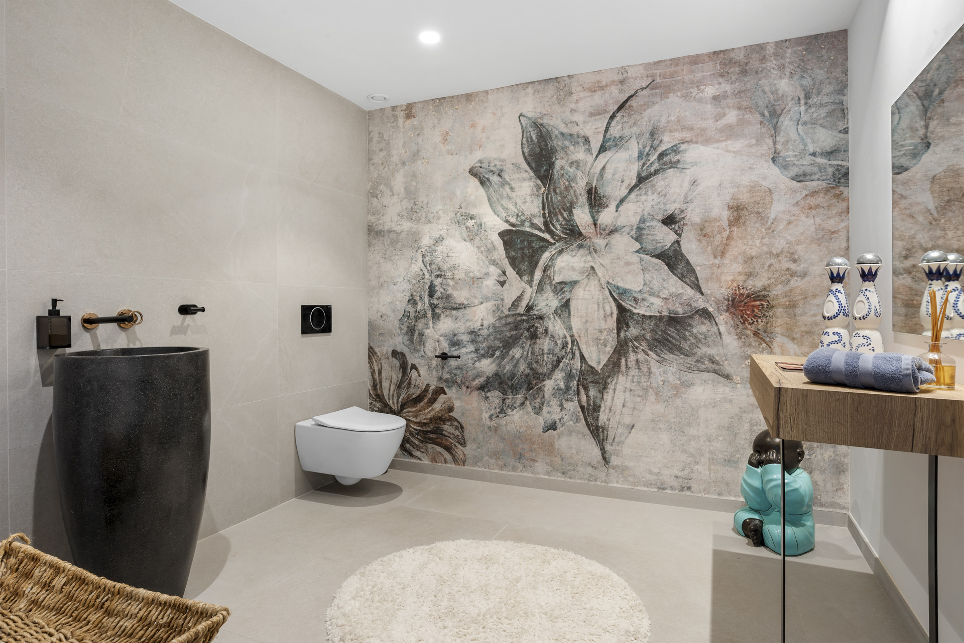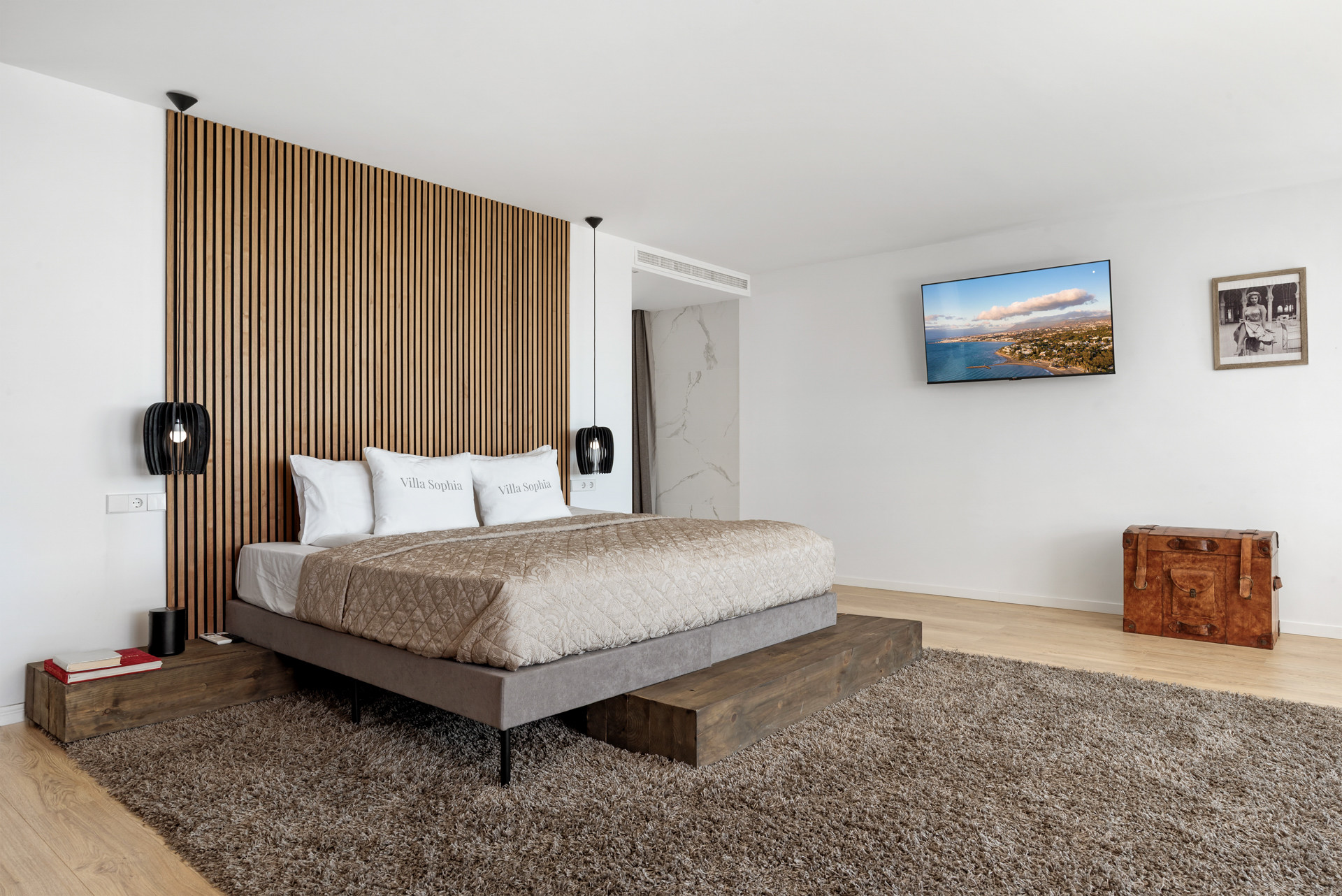 Upon arrival, you're greeted by an expansive entrance that unveils an exclusive hall spanning multiple levels with ceilings reaching up to 6 meters high. Dominating the space is "Sophia Loren," a 12m2 wall mural paying homage to the iconic Italian actress after whom the villa is named.
