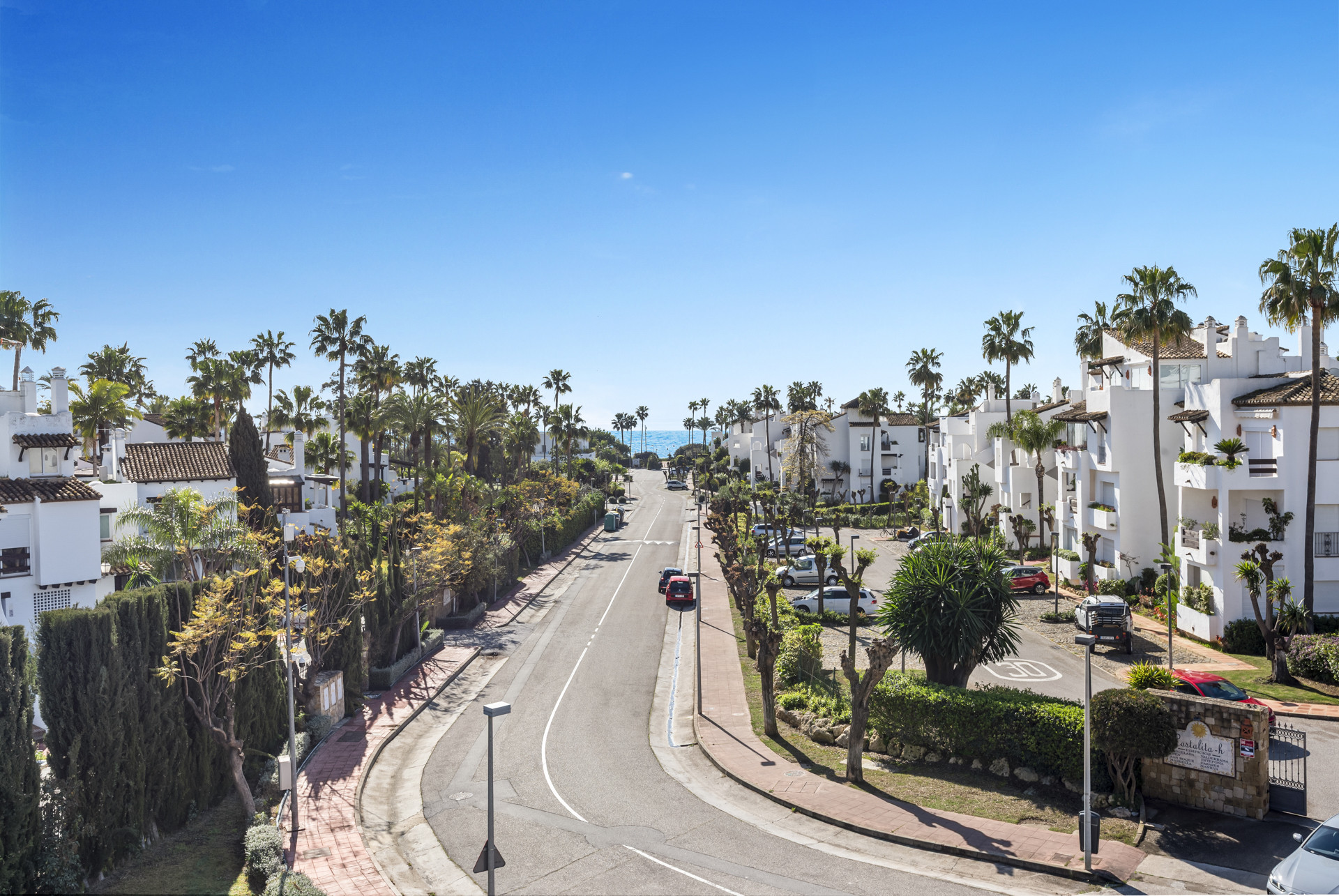 Komplexet erbjuder säker underjordisk parkering och ett vackert poolområde med gemensamma solsängar och fantastisk utsikt över bergen, golfdalen ner till havet, Gibraltar och Marockos kust.