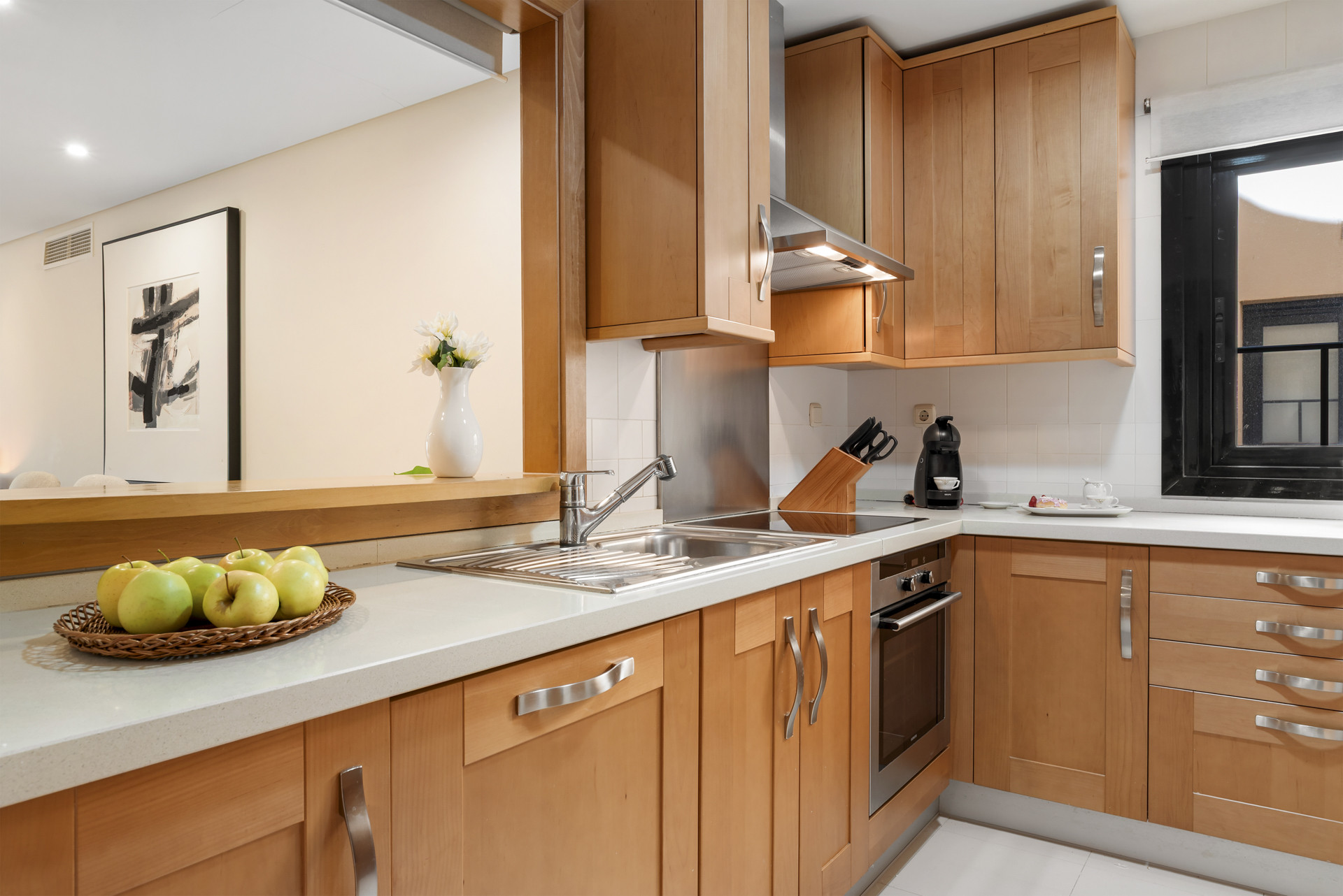 Den/det oberoende kök, av induktion, är utrustat med kyl, mikrovågsugn, ugn, frys, diskmaskin, tallrikar/bestick, köksredskap, kaffemaskin, brödrost och köksutrustning