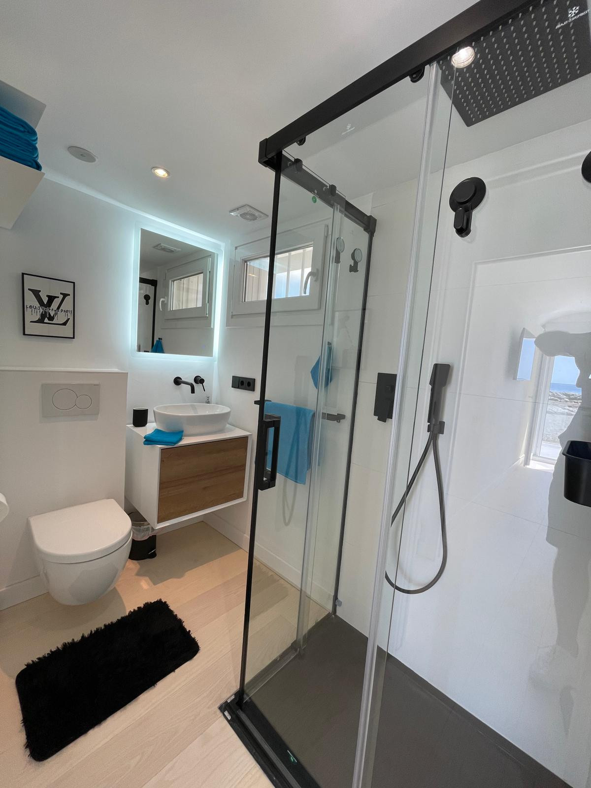 Kliv ut och njut av de spektakulära omgivningarna. På bottenvåningen hittar du en rymlig terrass med utemöbler, perfekt för morgonkaffe, middag eller bara för att njuta av utsikten över Medelhavet. Terrassen på andra våningen erbjuder ett mer privat solbad med bekväma solsängar, idealiskt för avkoppling under den spanska solen.