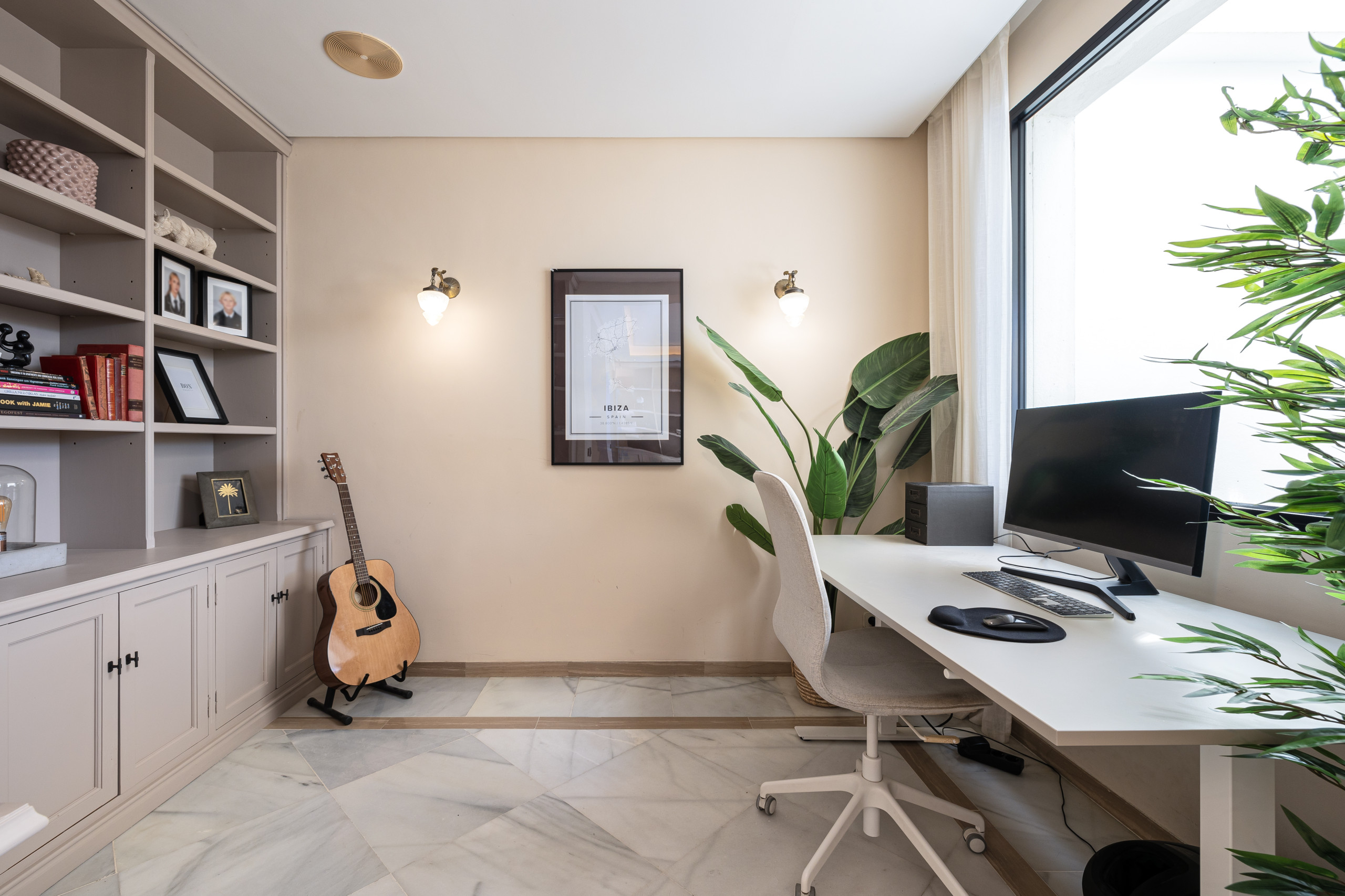Var och en av de fem sovrummen är rymliga och vackert utrustade, alla med eleganta egna badrum och fönster från golv till tak för att fånga den omgivande scenografin. Ett dedikerat kontorsområde ger ett lugnt utrymme för distansarbete eller tyst läsning, medan villan's tre våningsplan säkerställer integritet och bekvämlighet för varje gäst.