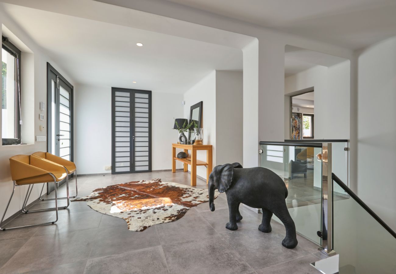 Interiörerna är genomtänkt designade med neutrala toner, mjuka texturer och rymliga öppna planlösningar. Köket är fullt utrustat med moderna apparater och ansluter till en bekväm matplats och vardagsrum, vilket gör det idealiskt för umgänge eller lugna kvällar hemma. Var och en av de fem sovrummen erbjuder ett lugnt utrymme att koppla av på, medan de tre badrummen - färdiga i en ren, samtida stil - säkerställer komfort och bekvämlighet för gäster. Det finns också ett inhägnat garage för ökad säkerhet och praktiskhet.