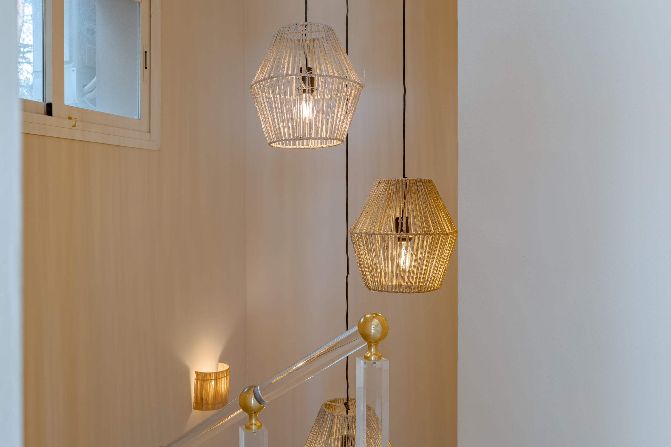The villa features four bedrooms—one located on the ground floor and three on the upper level. Both the downstairs bedroom and the master suite upstairs are en-suite and offer direct access to the terraces. The other two upstairs bedrooms share a bathroom. All bedrooms feature a King size bed for your comfort and relaxation, This layout comfortably accommodates up to 8 guests.